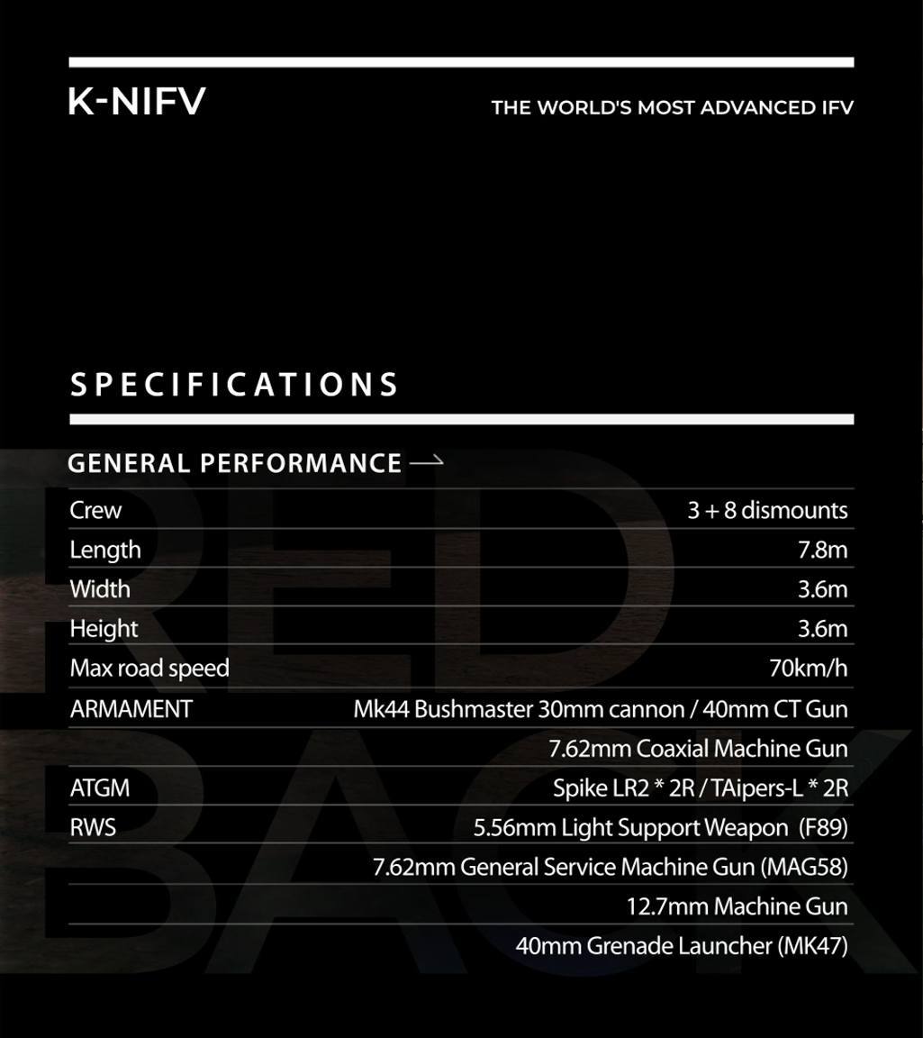 烽火问鼎计划 每天认识一件兵器 韩国🇰🇷韩华(Hanwha)在ADEX 2025上展出K-NIFV步兵战车的无人炮塔细节照(图1,图2,图3和图4);K-NIFV步兵战车(图5,图6,图7);K-NIFV和Redback的主要区别(图8);K-NIFV当前的基本指标参数(图9)