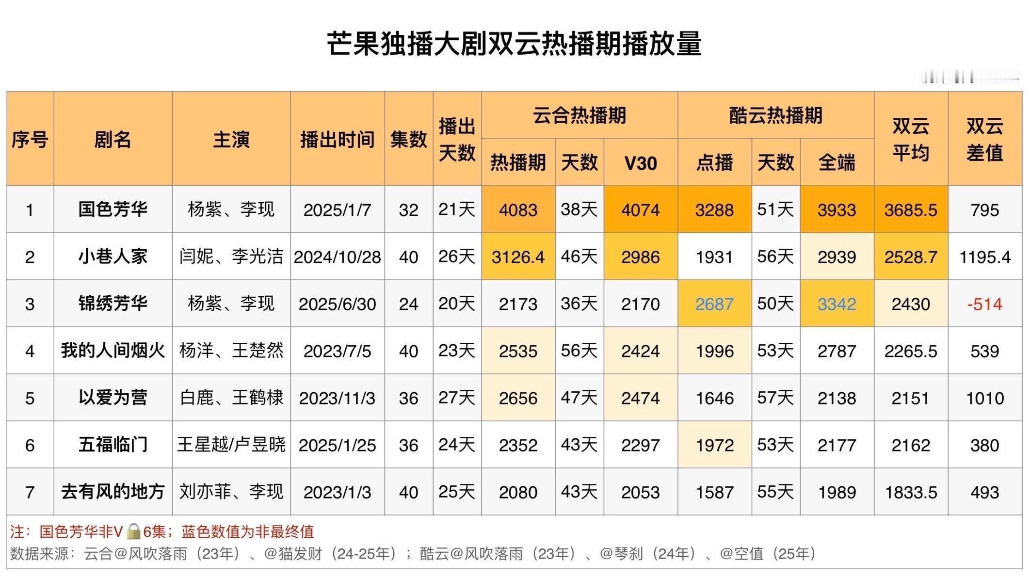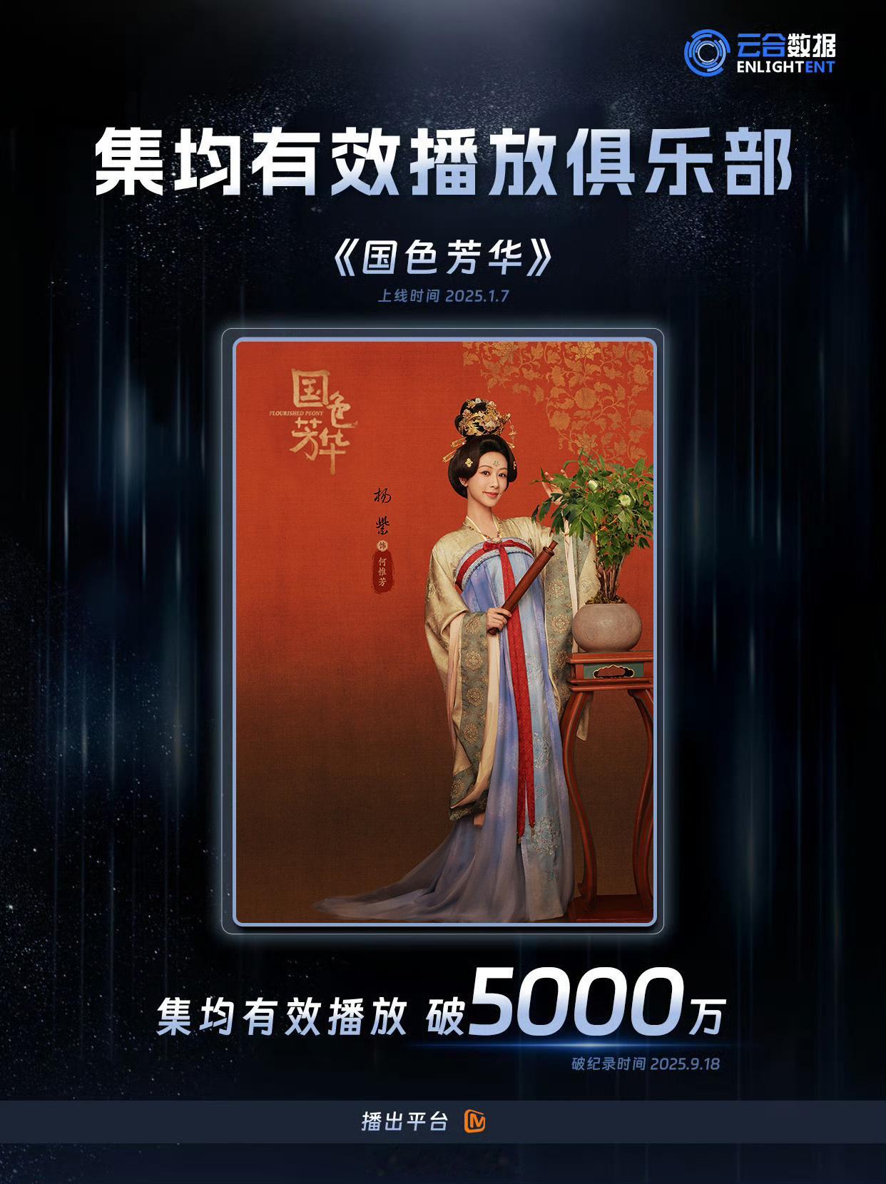 国色芳华芒果TV晚上8点开播,首播3+1集,云合首日956,酷云点播首日968,热播期云合酷云全史冠,也是🥭历史上唯一一部云合破5000万的剧集