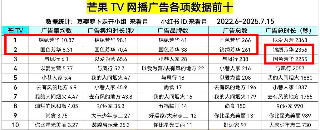 国色芳华开局12广,锦绣芳华开局14广,是全平台史冠+史亚,招商各个维度的数|据也是🥭剧集招商历史上的史冠和全年冠