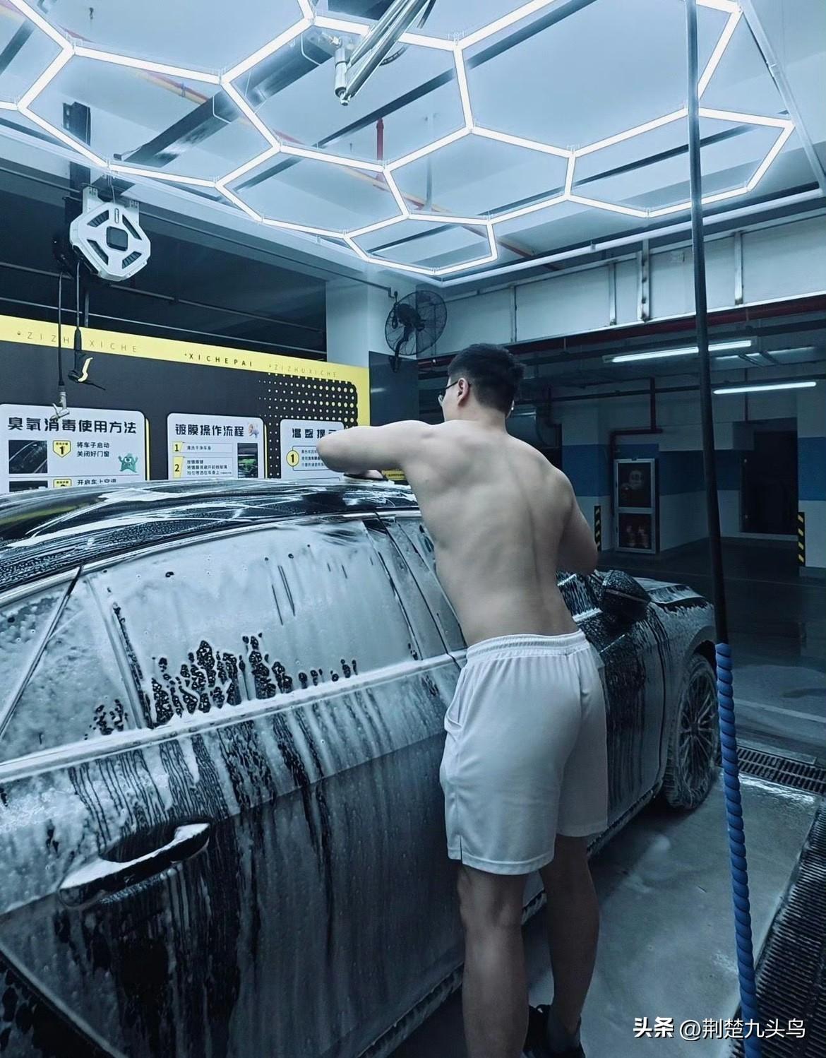 洗车的白短裤肌肉男,想帮忙一起洗🚗