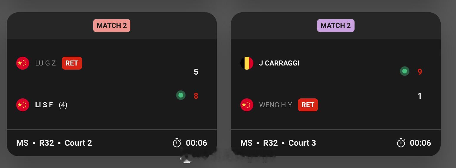 陆光祖、翁泓阳退赛,李诗沣和比利时的卡拉吉晋级16强