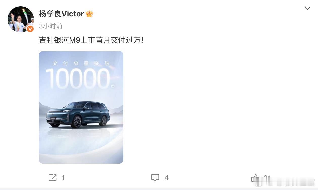 吉利银河M9 上市首月首个月交付量突破10000台了......