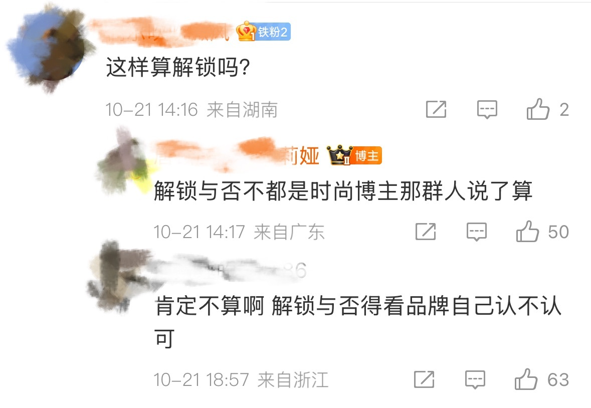 网友互动“这样算解锁吗”,“解锁与否不都是时尚博主那群人说了算”
