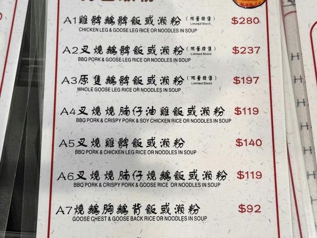 台湾游客发帖:香港物价太贵了。 她表示去吃米芝莲推荐的一乐烧鹅,表示这么一份$197,沒有配菜,对比起来,台湾的物价实在便宜。