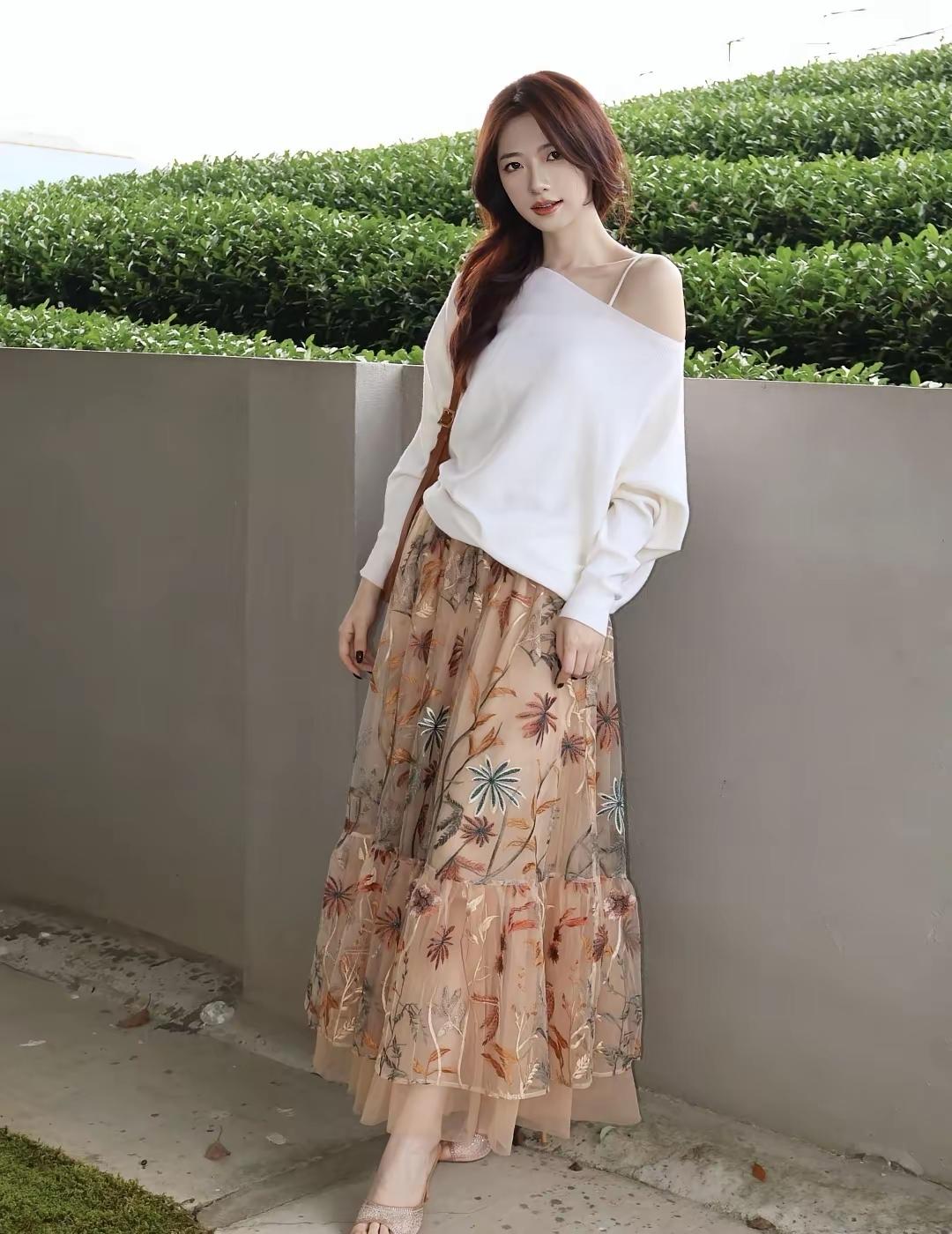 优雅穿搭指南:米色针织衫+长裙,手提包点缀,尽显温柔气质