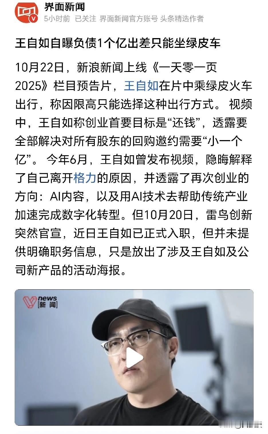 没明白 王自如,不是说从来不看工资条的吗? 怎么就负债了