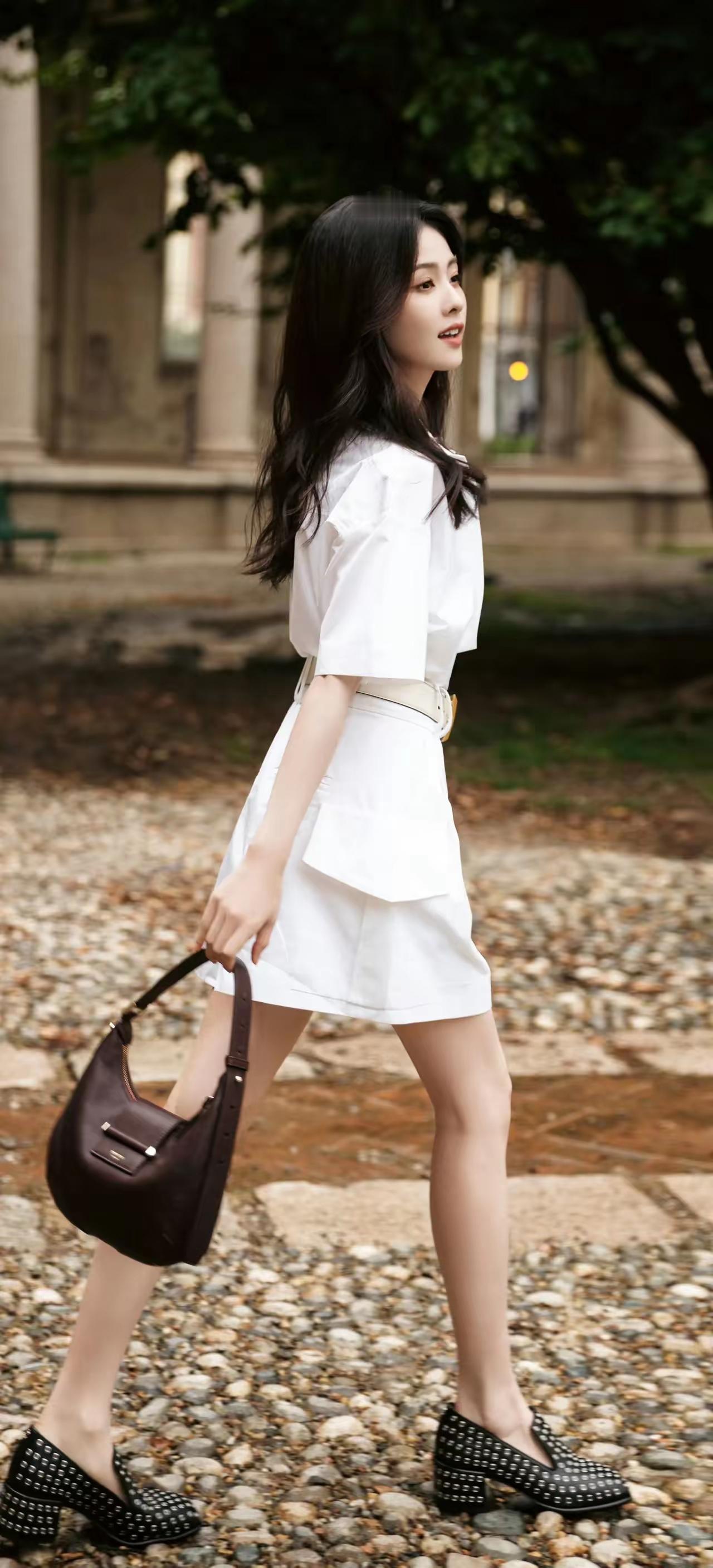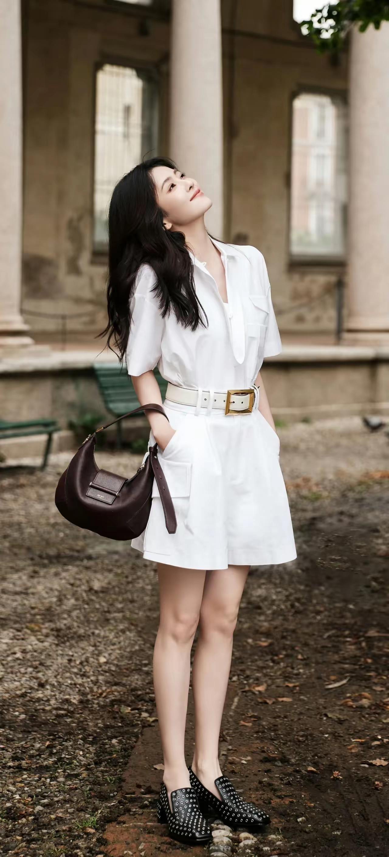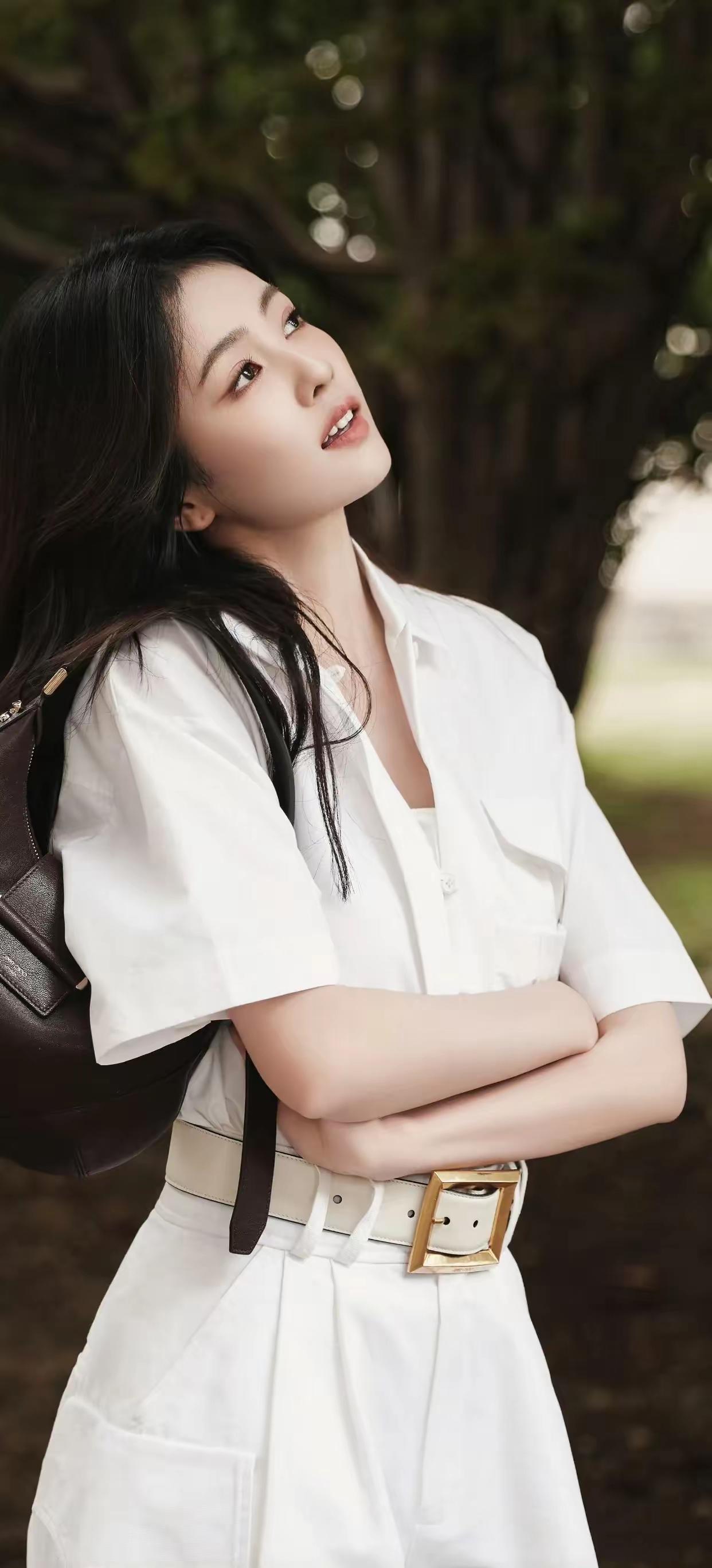 穿着白衬衫,靠在柱子上,好有气质!