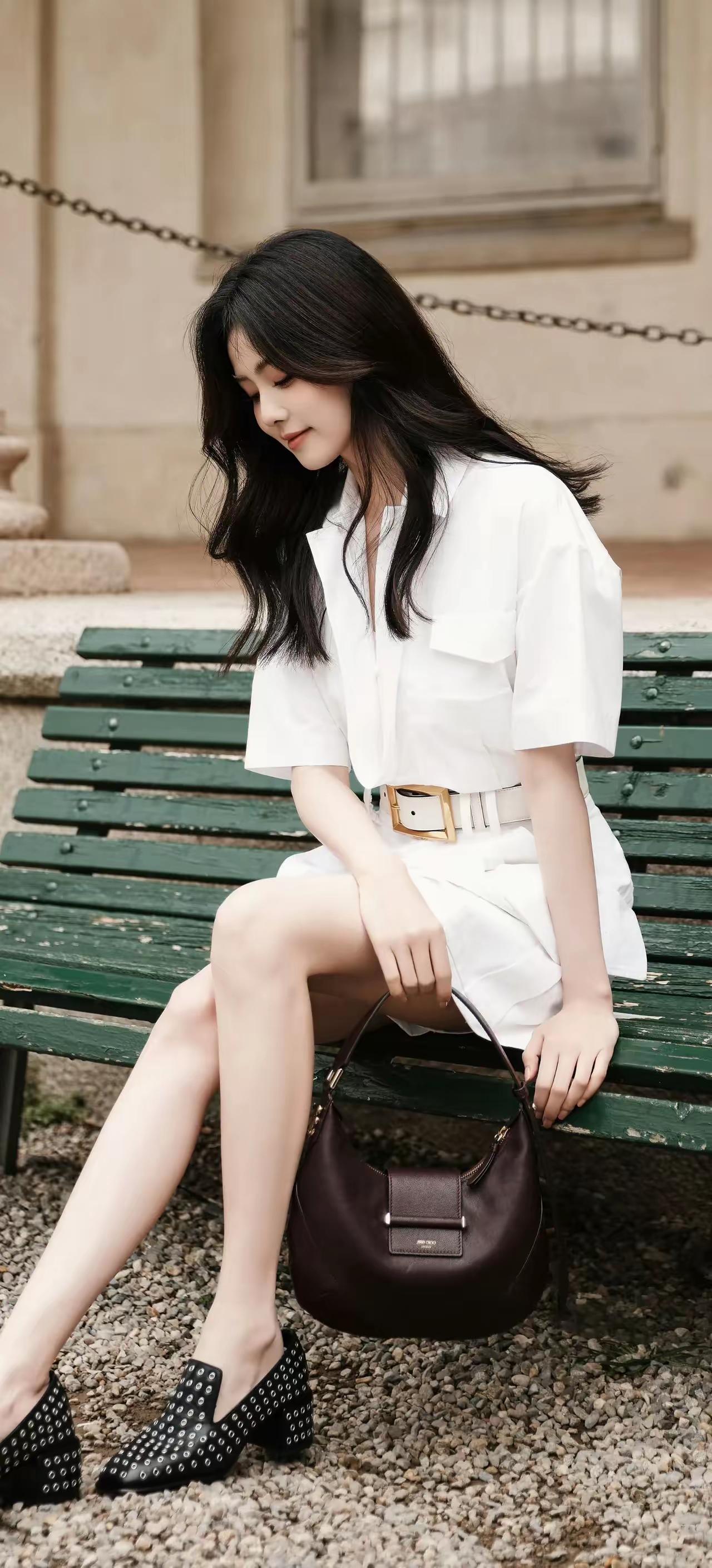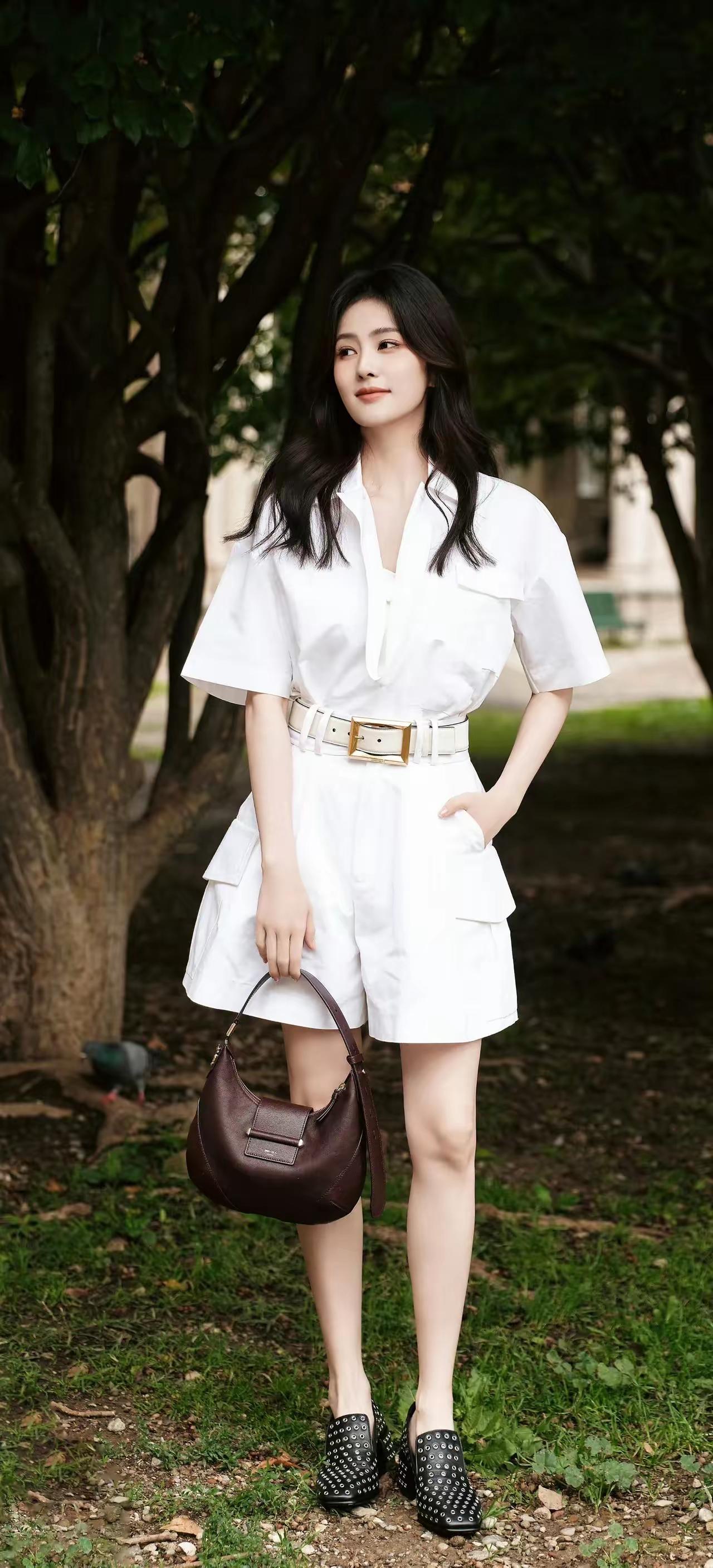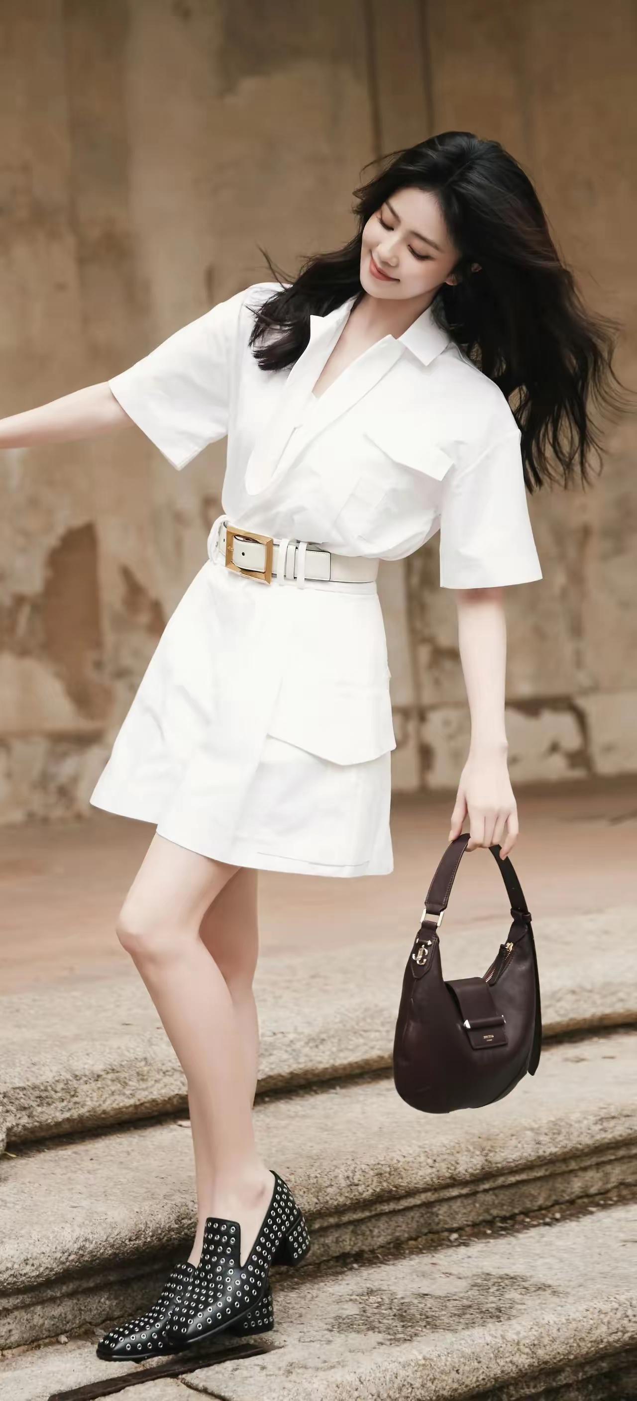 穿着白衬衫,靠在柱子上,好有气质!