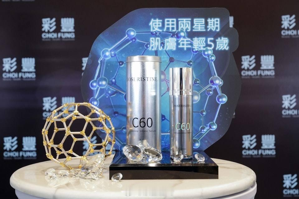 Bosco所提及的「一步到位」護膚法寶,正是當日活動的主角——彩豐「升級版 C60富勒烯十項全能精華液120ml」。這款精華液採用全新升級配方,不添加防腐劑;特別採用富勒烯,其抗氧化功能是維他命C的125倍,強效清除自由基,從而擊退鬆弛、乾燥、色斑、皺紋、暗啞等各種肌膚問題,全面對抗肌膚衰老。另特別添加透明質酸,為肌膚即時補充水分,提供長效滋養。