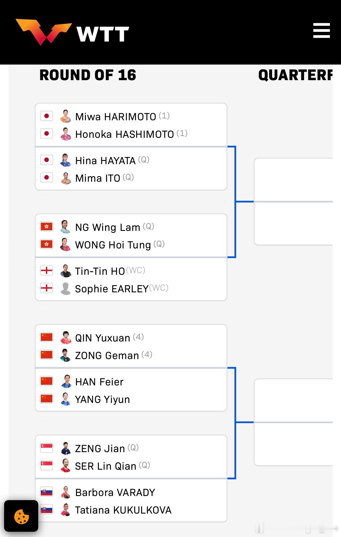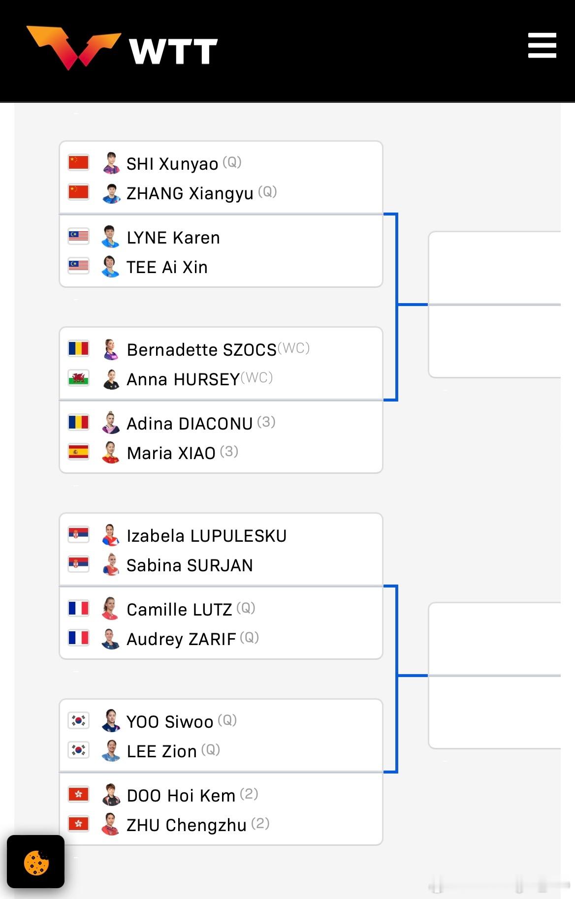 WTT球星挑战赛伦敦站2025 资格赛结束,女双正赛完整签表