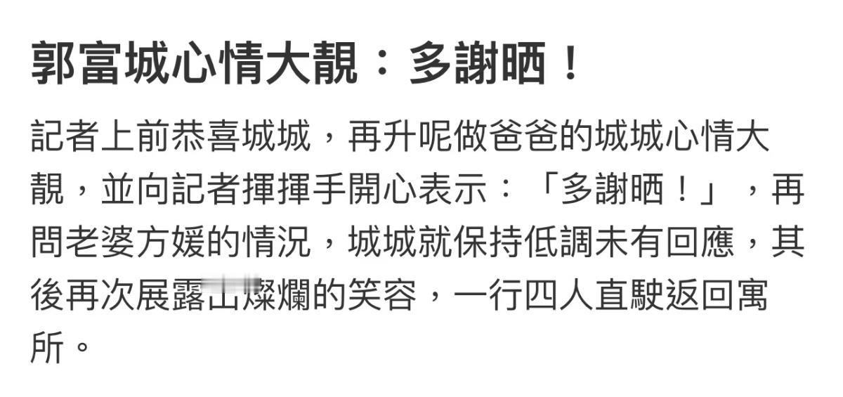 郭富城和方媛的三胎生了,是个小公主,四大天王真是岳父命[笑cry]