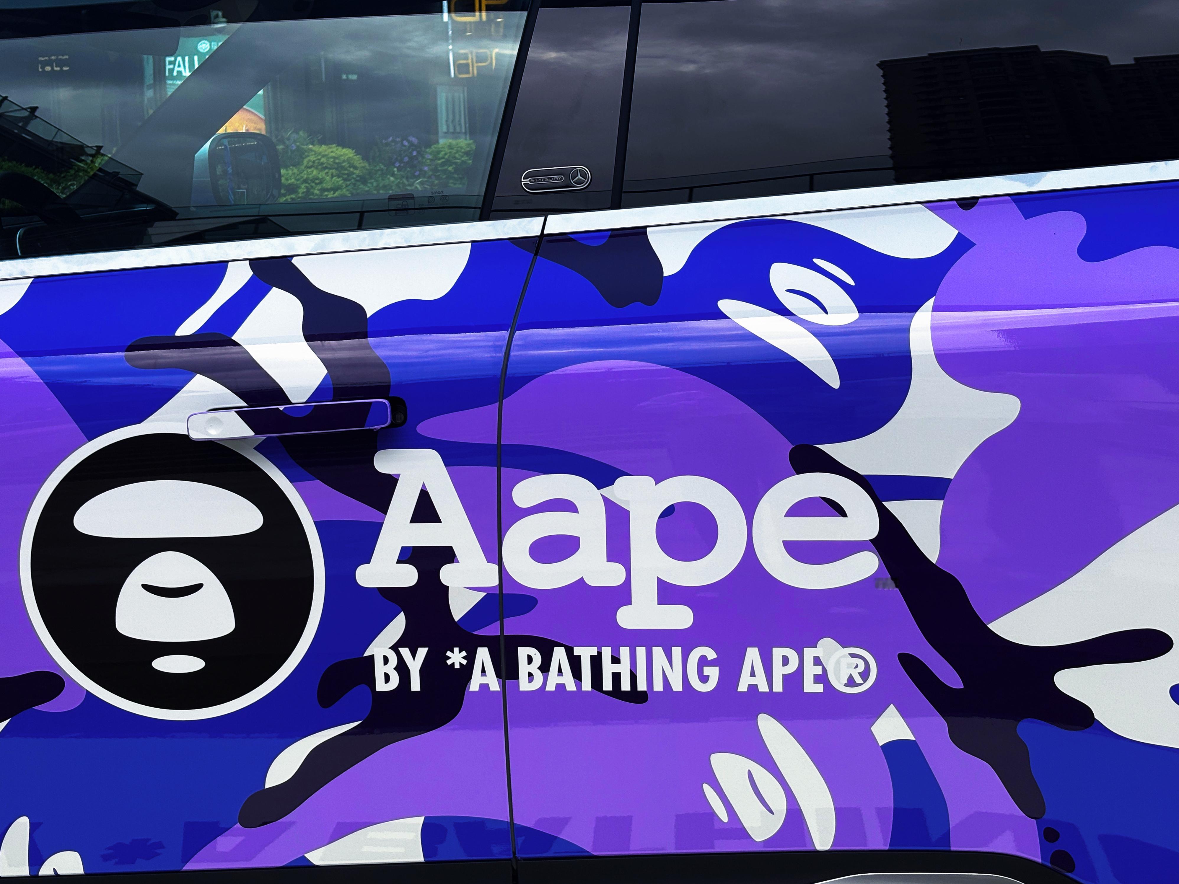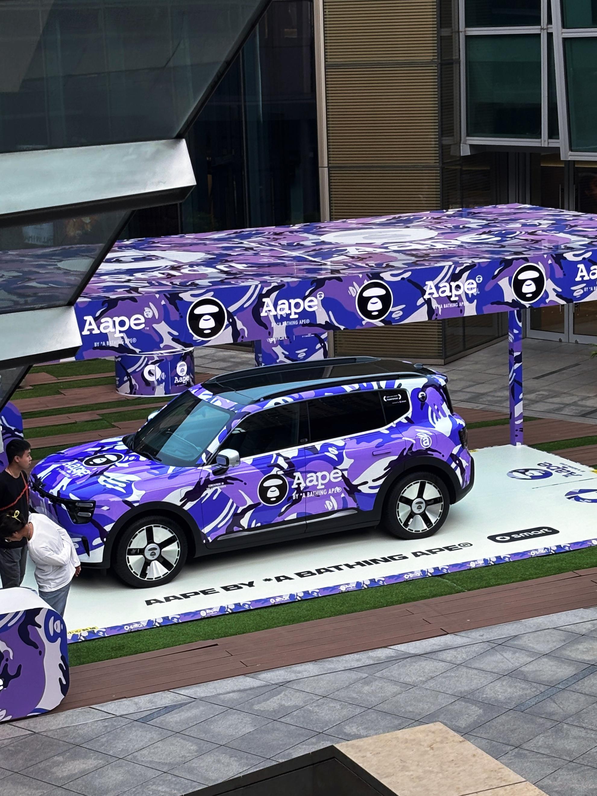 身披限定紫色迷彩的AAPE联名版smart精灵5号,轮毂和车身全是细节,出行工具变身行走的潮流单品