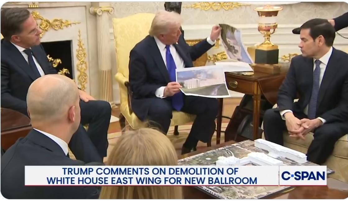 特朗普:关于新舞厅:“我一直不够透明?真的吗?我已经把这个告诉了所有愿意听的人。三流记者没注意到,因为他们根本没看。你就是个三流记者,一直都是。”