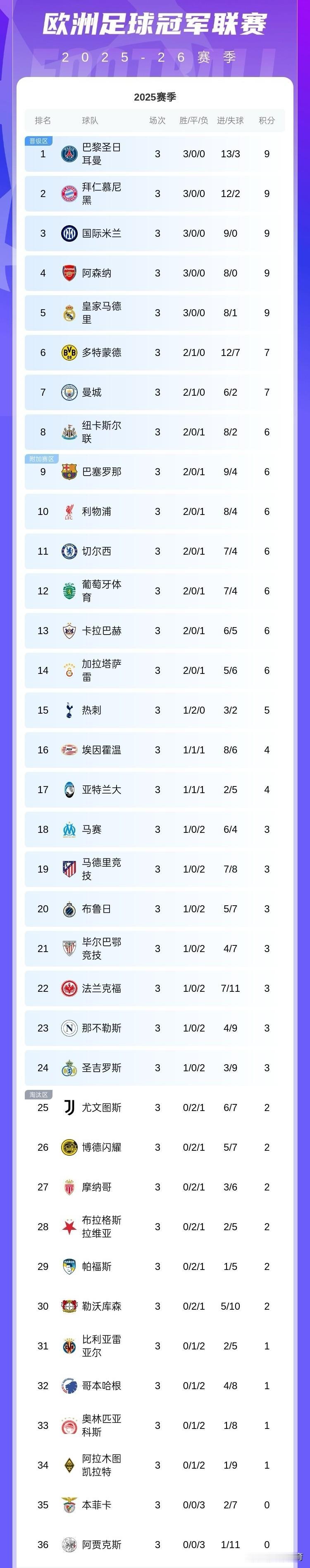欧冠最新积分榜:5大联赛全胜球队各有1支!拜仁皇马均取得3连胜,切尔西和利物浦均是5:1大胜,蓝军4连胜红军终结4连败! ✅皇马1:0尤文图斯的比赛,贝林厄姆打进制胜进球,尤文图斯连续7场不胜,图多尔帅位拉响警报。 ✅利物浦5:1法兰克福的比赛,维尔茨助攻双响但还是失误较多,萨拉赫替补出战还是引发争议,好在终于取胜止住颓势。 ✅拜仁4:0布鲁日的比赛,开赛12连胜创德甲球队历史,距离米兰创造的考噻13连胜一步之遥;凯恩继续破门,诺伊尔拿到欧冠第102胜超越卡西利亚斯。 ✅切尔西5:1阿贾克斯的比赛,两队实力有差距,加上对手早早又染红,蓝军大胜水到渠成,阿贾克斯位列副班长第36位。 ✅葡萄牙体育2:1马赛,奥巴梅扬助攻又染红;加拉塔萨雷3:1博德闪耀,奥斯梅恩双响;热刺和亚特兰大与对手均战成0:0。