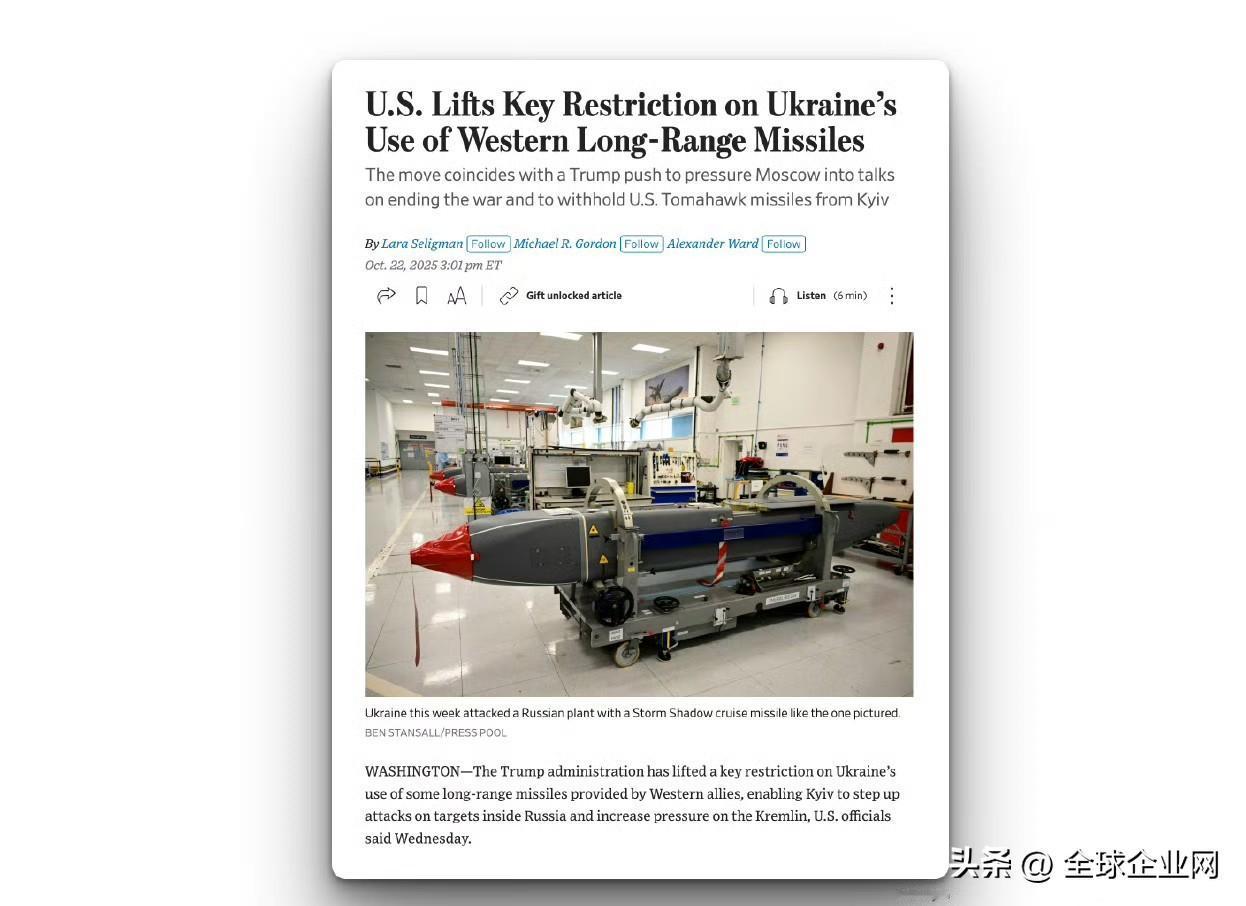 美国解除了对乌克兰使用西方远程导弹的限制 美国官员周三表示,特朗普政府取消了对乌