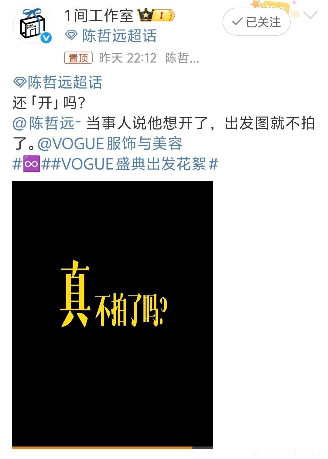陈哲远出发图就不拍了陈哲远不拍vogue出发图了 陈哲远工作室拍的Vogue盛典出发物料,陈哲远说这次自己不拍出发图了[允悲] 是真不拍了吗?还等着你的出发图了!