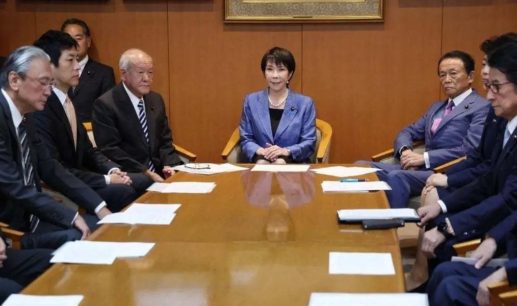 “太上皇”临朝听政, 高市早苗左右首的两个人分别是, 麻生太郎和他的小舅子 凡是