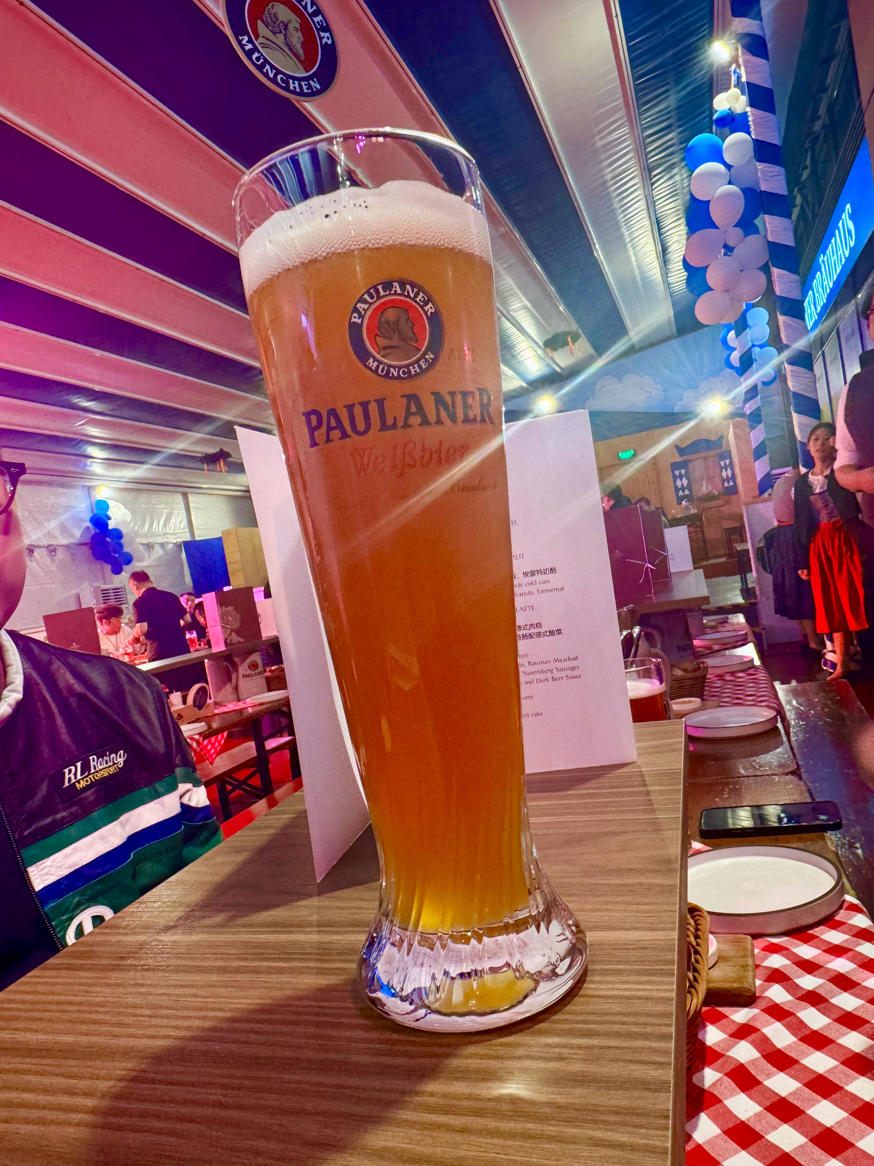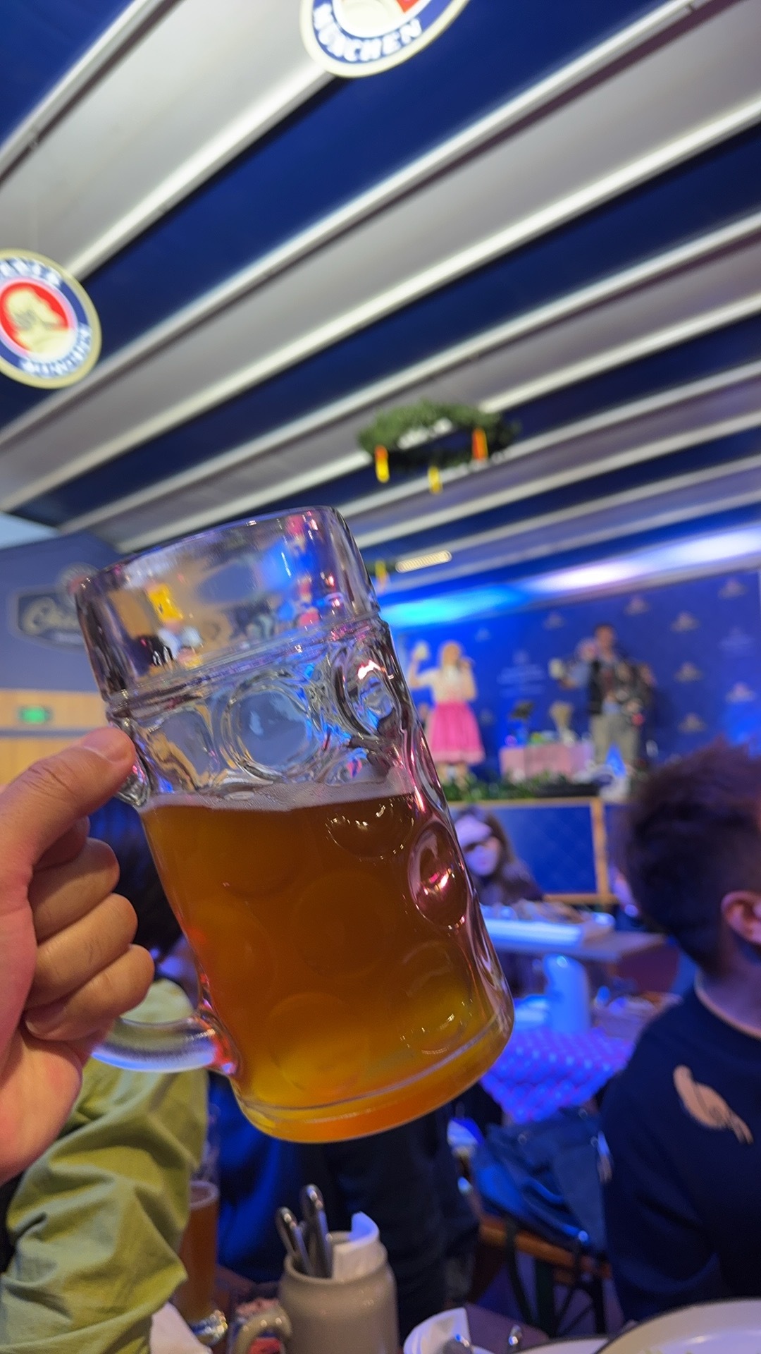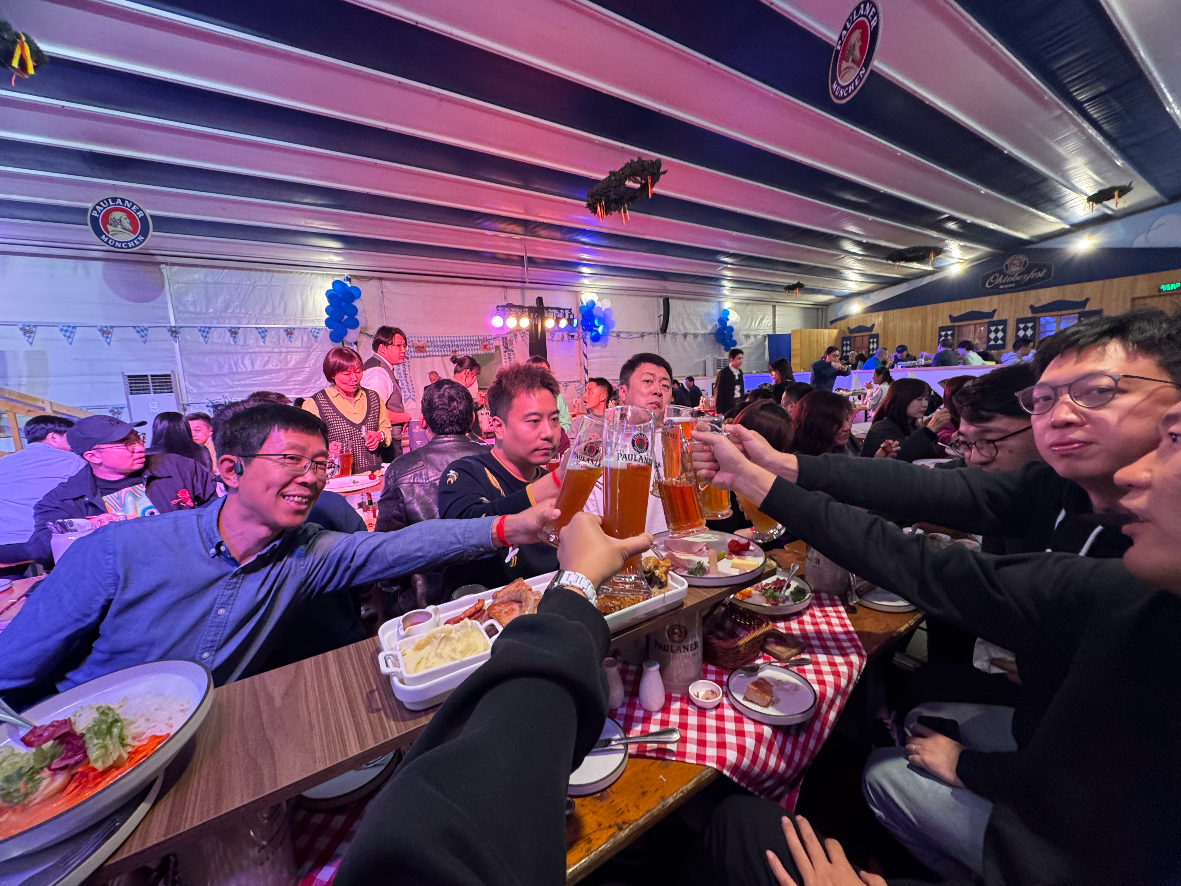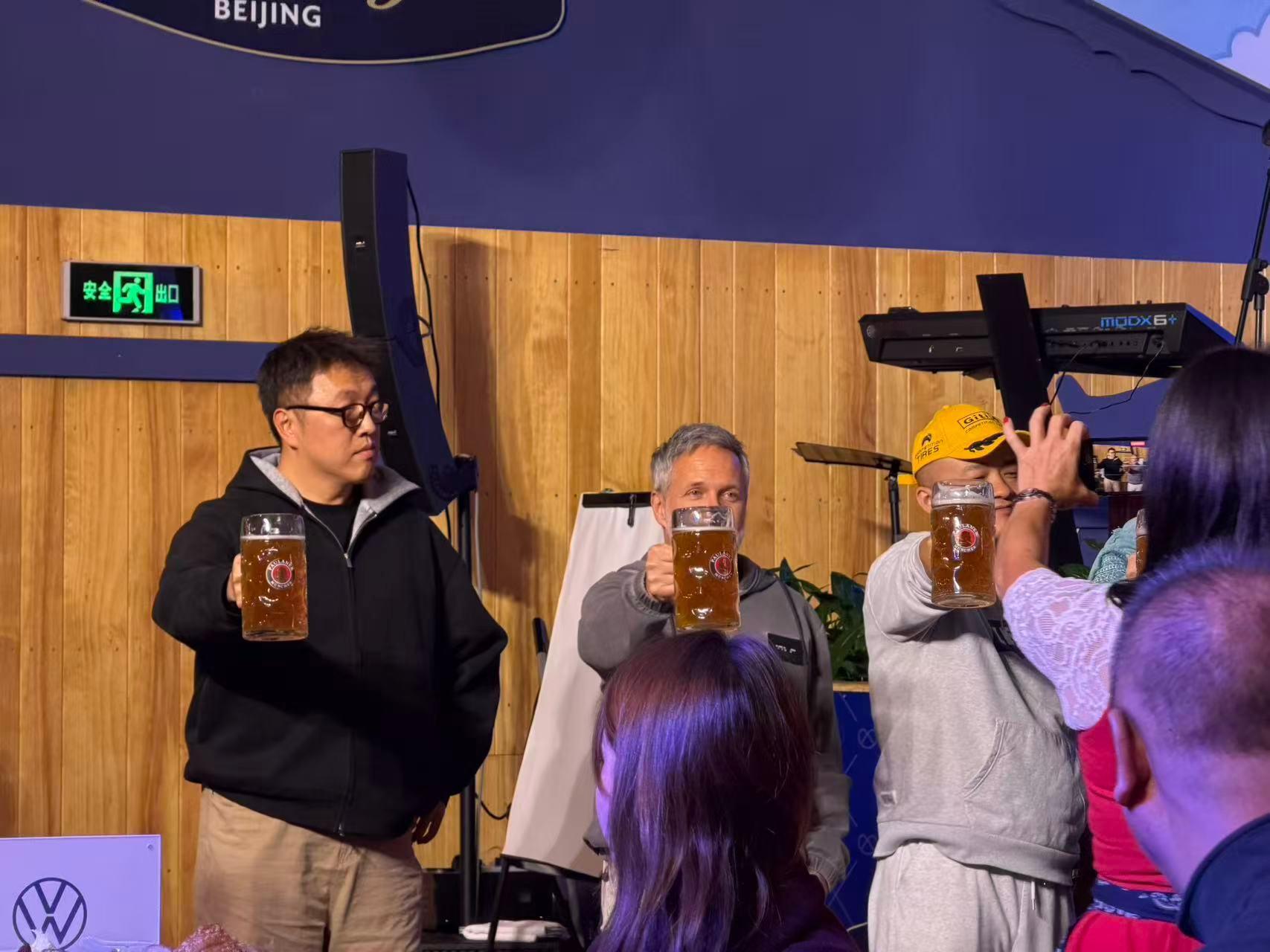 今年上台挑战1L啤酒杯 平行举杯大赛