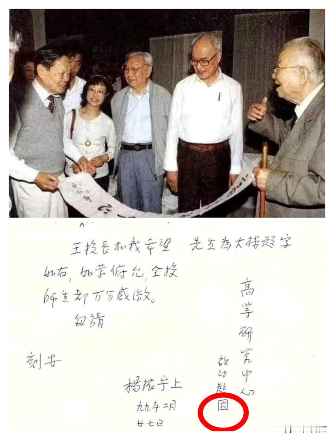 看到一张图很有意思 是杨先生写给启功的一封书信 看完才知道原来先生一个理工生也有这么可爱的一面。 先生给启功写这封书信的目的是清华大学成立了高等研究中心,想要启功前辈给即将盖好的大楼题字。 作为一个理工男,做事必有图表事例,先生就在书信的后面把题字的内容“高等研究中心”写了出来,后面还把“启功题”也标注了。 最可爱的地方是先生为了提醒启功要在下面盖章,居然自己用手画了一个,实在是太可爱了。 不知道启功先生提笔的时候,是不是就是按照杨先生写的模样复刻的。 真的没想到,一个如此成功的理工男,竟然也有如此可爱的一面,你们觉得呢?