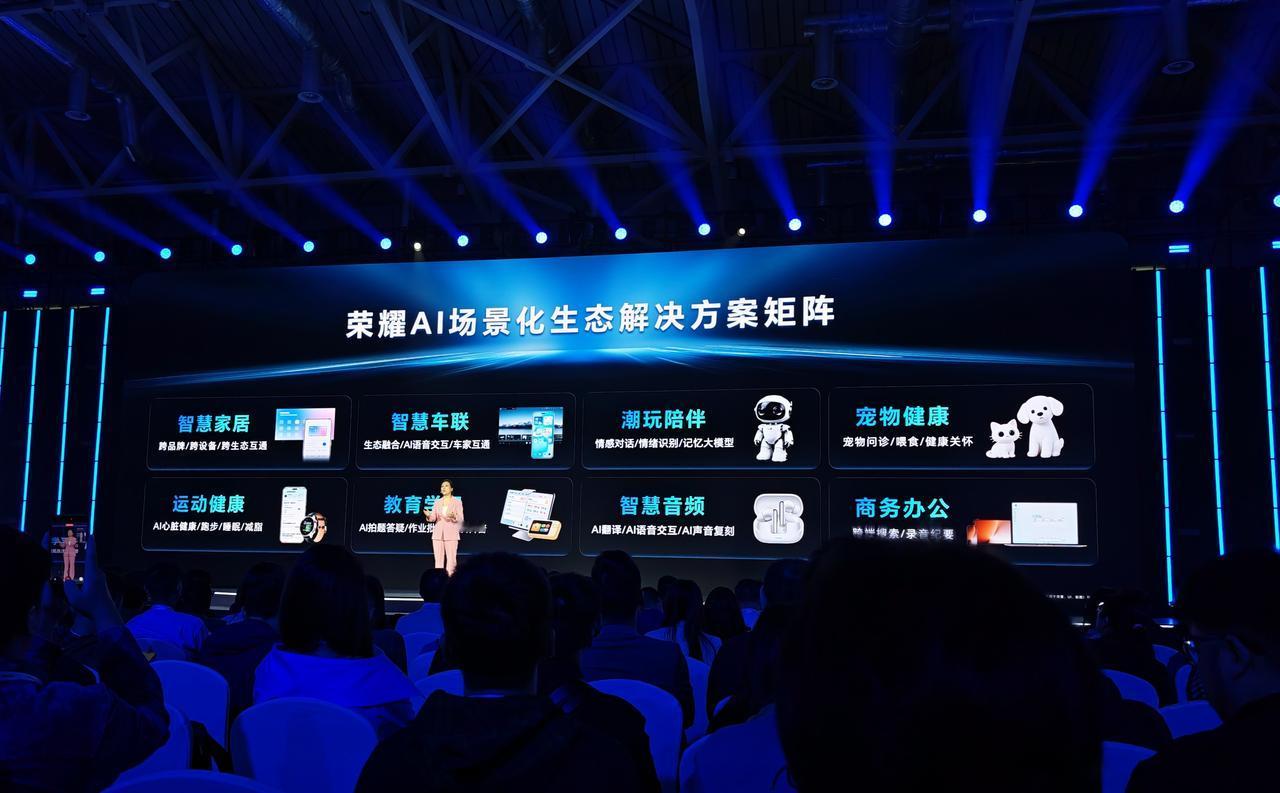 荣耀在全球开发者大会上,公布了荣耀AI场景化生态解决方案矩阵。包含了智慧家居、智慧车联、潮玩陪伴、宠物健康、运动健康、教育学习、智慧音频、商务办公的8大领域全面覆盖。 同时荣耀宣布HONOR Connect正式升级为HONOR AI Connect平台,标志着荣耀从“互联”迈入“智联”新阶段。 平台为生态合作伙伴提供智慧化的共享、入口的共享、和生态的共享,支持语音、视觉等多模态交互,并推出A系列软硬一体化模组,实现即插即用的AI能力接入。 平台也将助力大幅降低合作伙伴研发成本,缩短产品上市周期,推动产业高效协同,给合作伙伴带来生态赋能、渠道赋能,以及技术与品牌赋能三种合作方式,共同打造创新价值。