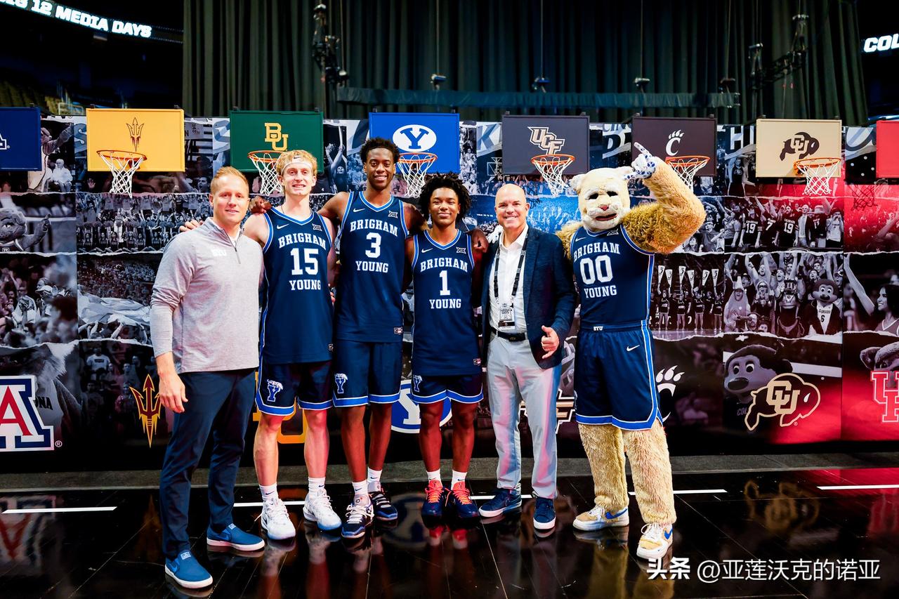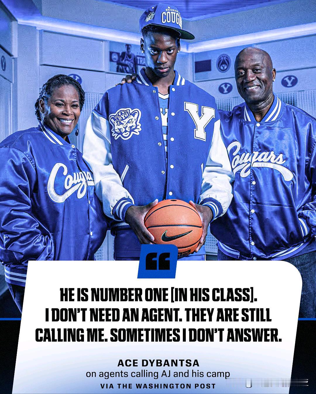 杨百翰大学主帅Kevin Young带着AJ Dybantsa,Richie Saunders与Robert Wright III参加Big 12联盟媒体日,2026年nba选秀 父亲Ace作为儿子的经纪人管理着迪班萨蓬勃发展的篮球事业,如果你想要找我的儿子,你必须先联系我。