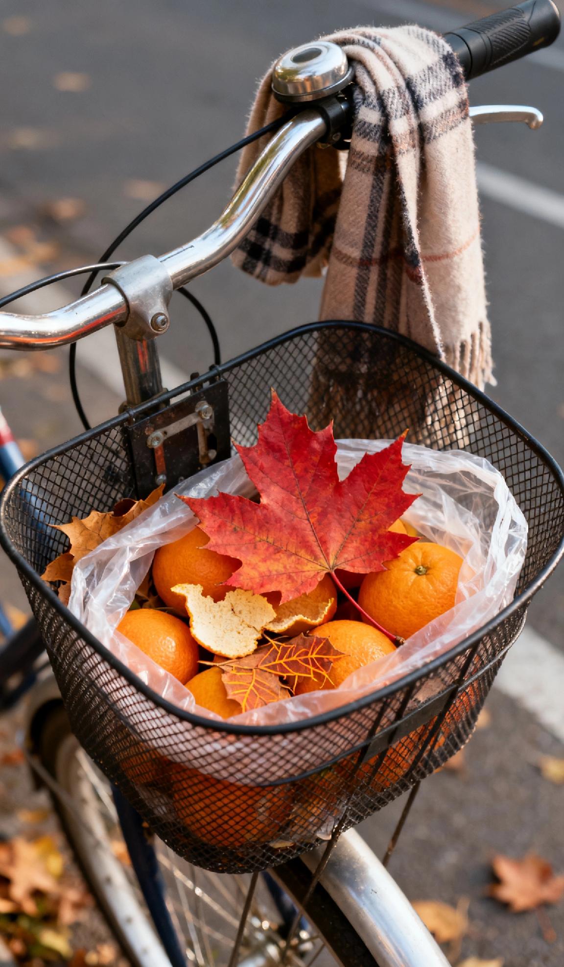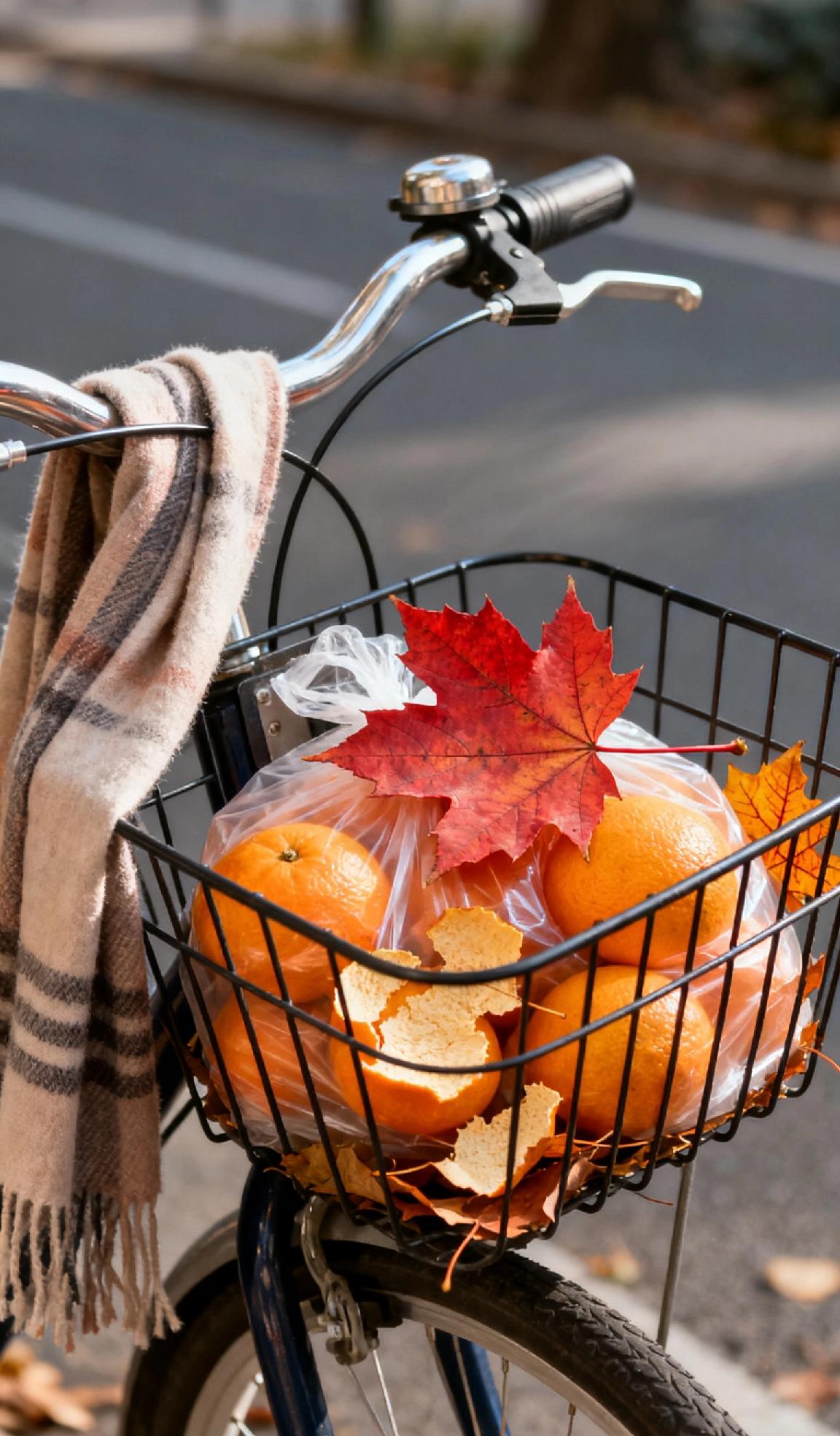 一张图证明秋天来了下班推自行车时,低头看见车筐里卧着片枫香叶,红得发暖,正压在刚买的半袋橘子上。橘子皮蹭到落叶,沾了点细碎的橙黄叶脉。骑上车时风裹着凉意吹过来,车把上挂的薄围巾晃了晃,边角扫过筐沿,落叶和橘子轻轻撞了下,发出细弱的“沙沙”声——这筐里的红与橙,就是秋天递来的小纸条。秋天树叶风景 秋景树叶照片 秋来树叶 代表秋天的图片