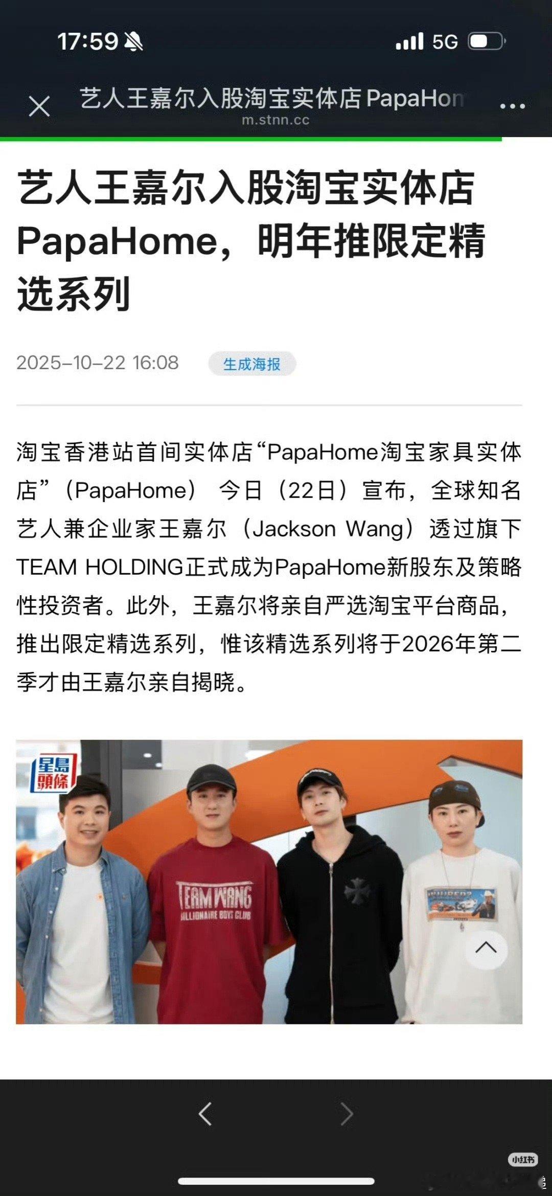 王嘉尔入股淘宝 重磅消息!王嘉尔旗下TEAM HOLDING入股淘宝,与阿里巴巴达成合作。他的跨界步伐从未停止,商业版图不断扩大,能得到行业巨头肯定,实力不言而喻!