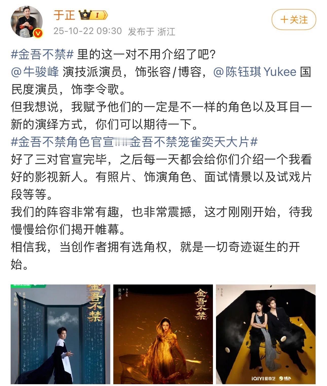 牛骏峰闷声干大事 牛骏峰久没动静一出来就官宣和于正合作的新剧[鼓掌][鼓掌][鼓掌]