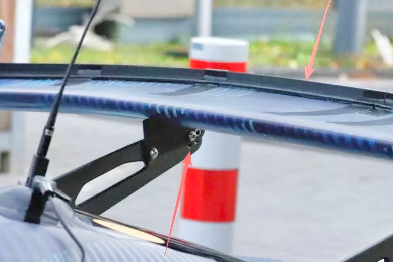 后面固定尾翼,有很高的格尼襟翼,这种尾翼支架还可以调整尾翼的攻角