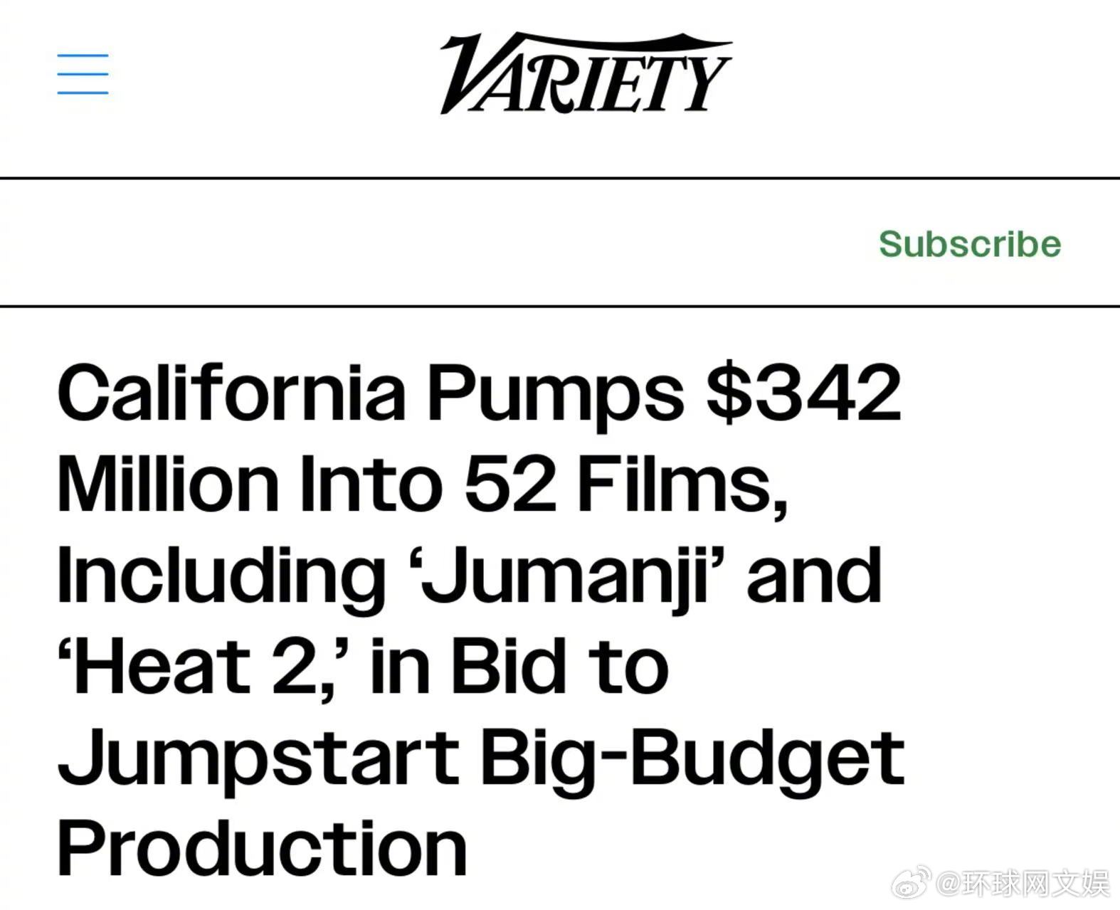 【#好莱坞用巨额补贴抢回大制作电影# 】据美国《综艺》21日报道,加利福尼亚州为了吸引影视大制作项目落户当地,特意推出3.42亿美元的税收抵免政策,为《勇敢者游戏》《盗火线2》等52部作品提供财政支持。