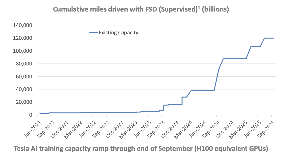 例行更新:特斯拉 Q3 财报公布,截至 9 月底,特斯拉 AI 算力总规模等效 12 万张 H100,即 120 EFLOPS。