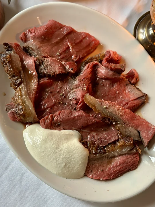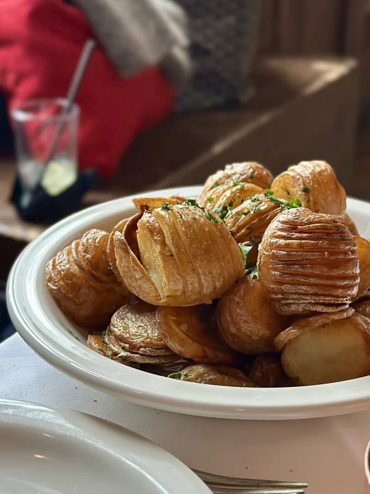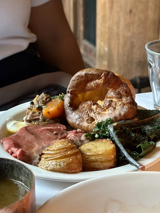 这个土豆都给我去吃!黄油&牛油,外酥里嫩,手风琴切片土豆,一口下去层次丰富。约克布丁面包就有点逊色了,无功无过。