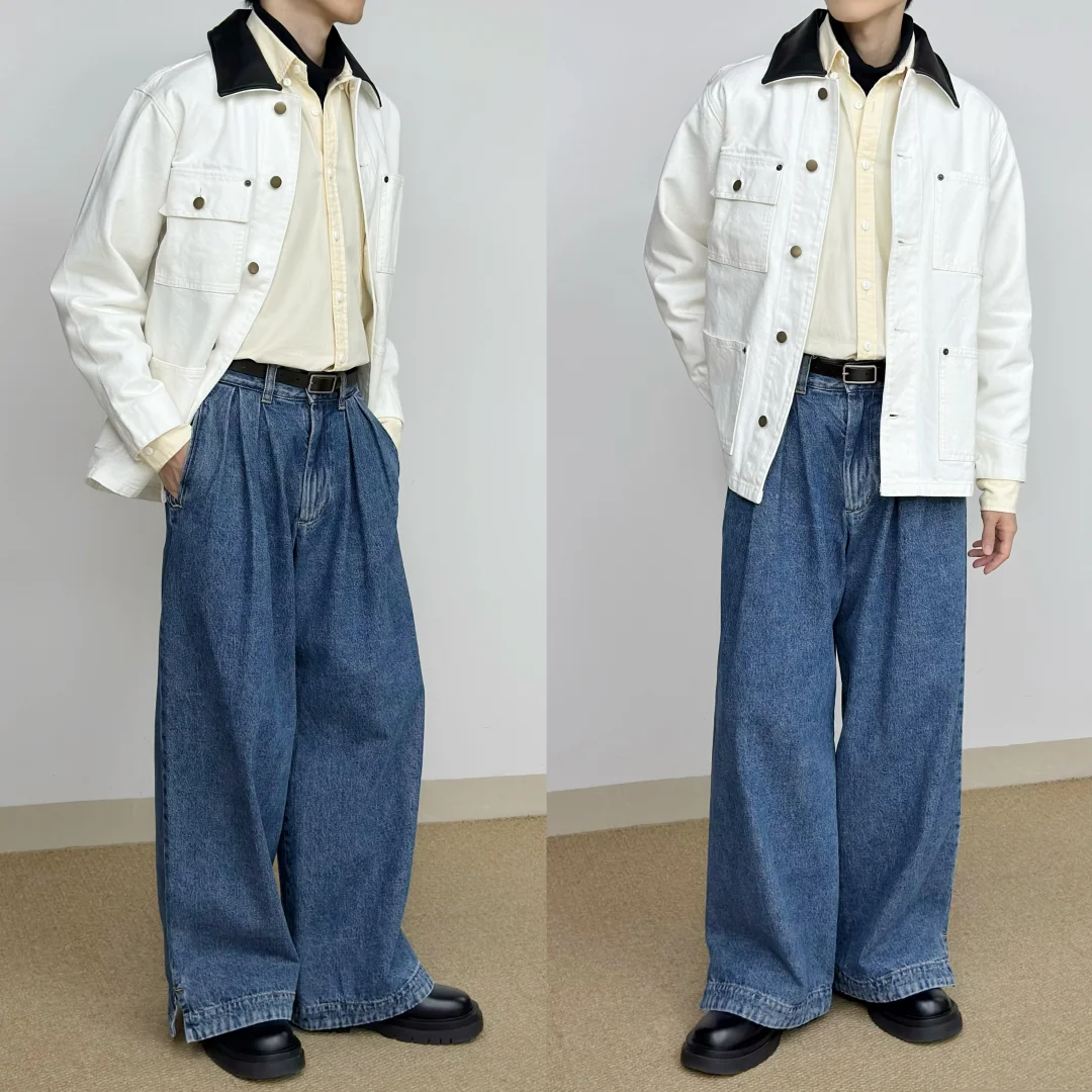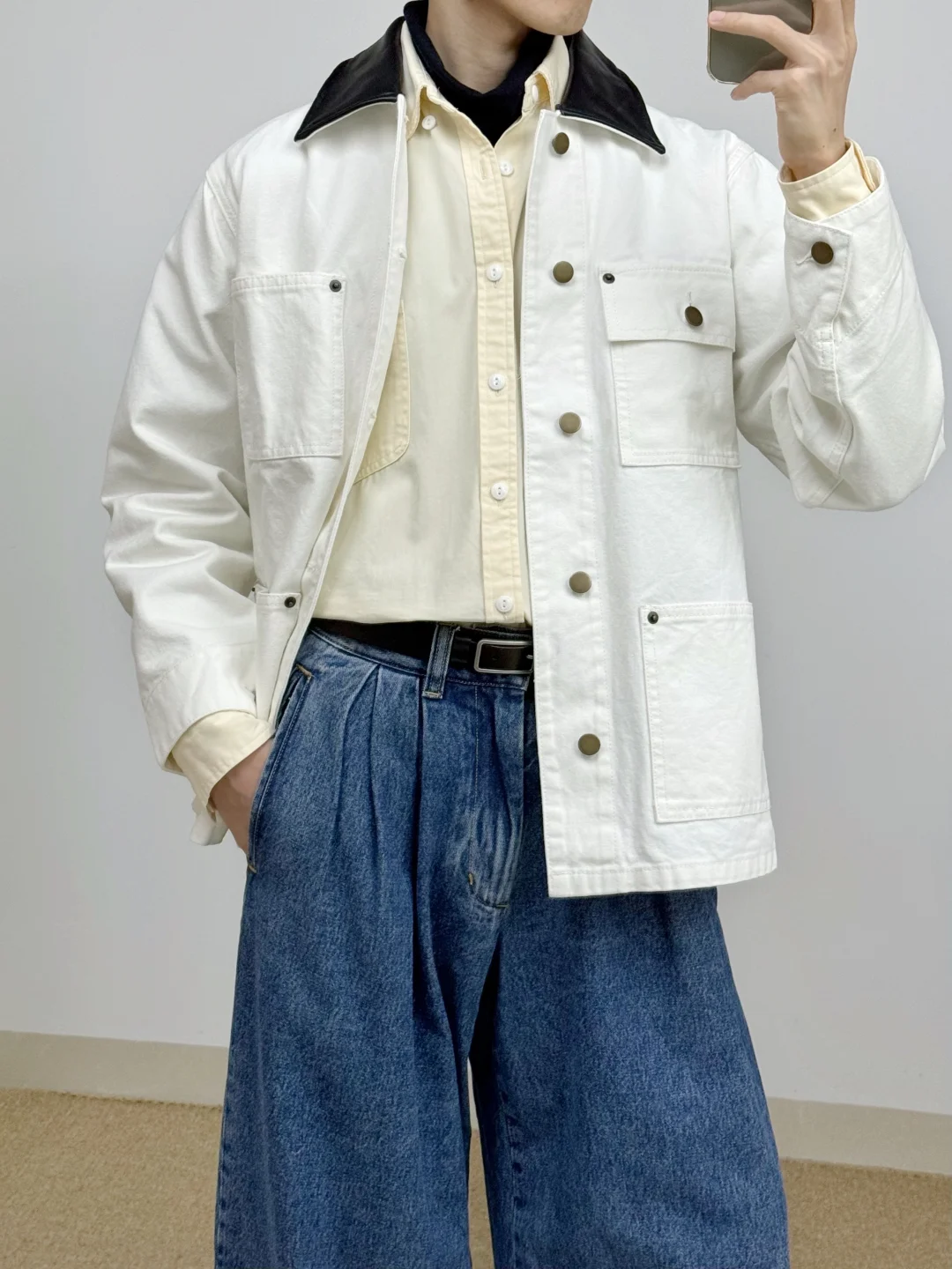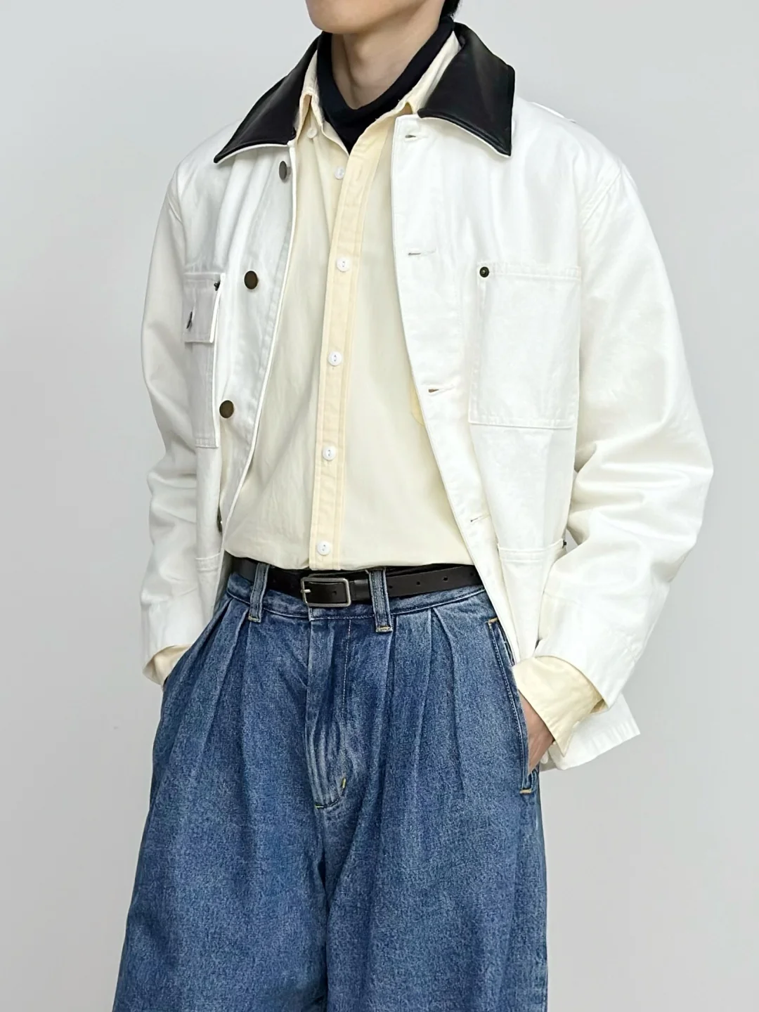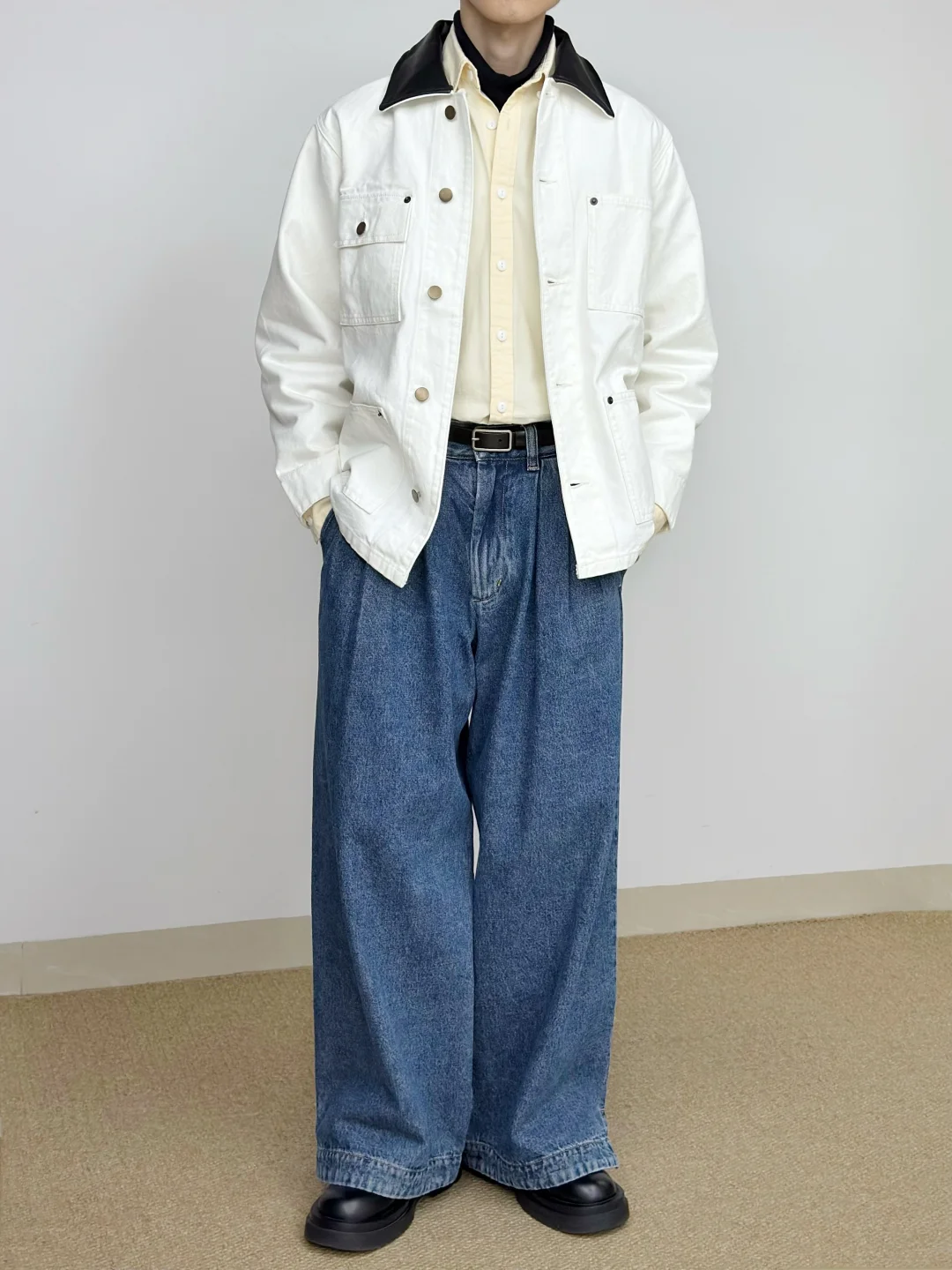 - 拼接夹克+阔腿牛仔裤 叠搭衬衫丰富层次🌟 简约干净的白黄蓝色系组合 松弛的版型,温和的色彩 穿出秋冬柔系美式造型~ -