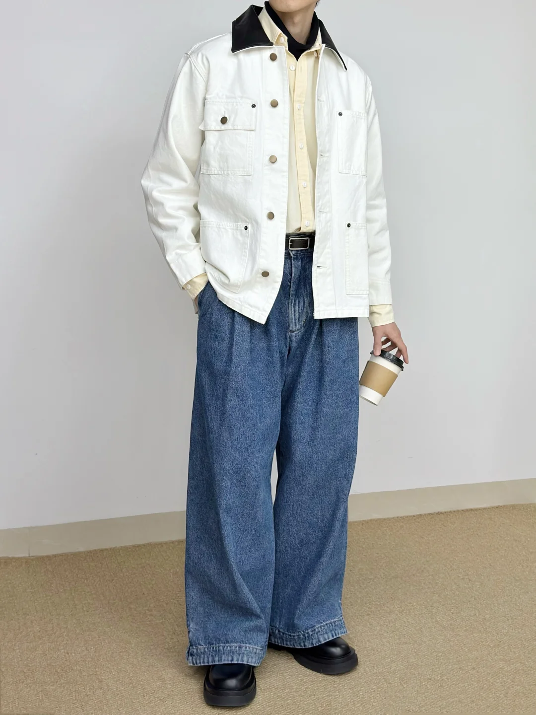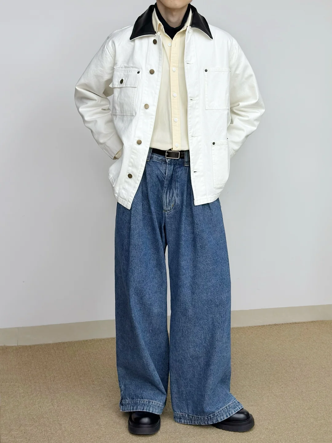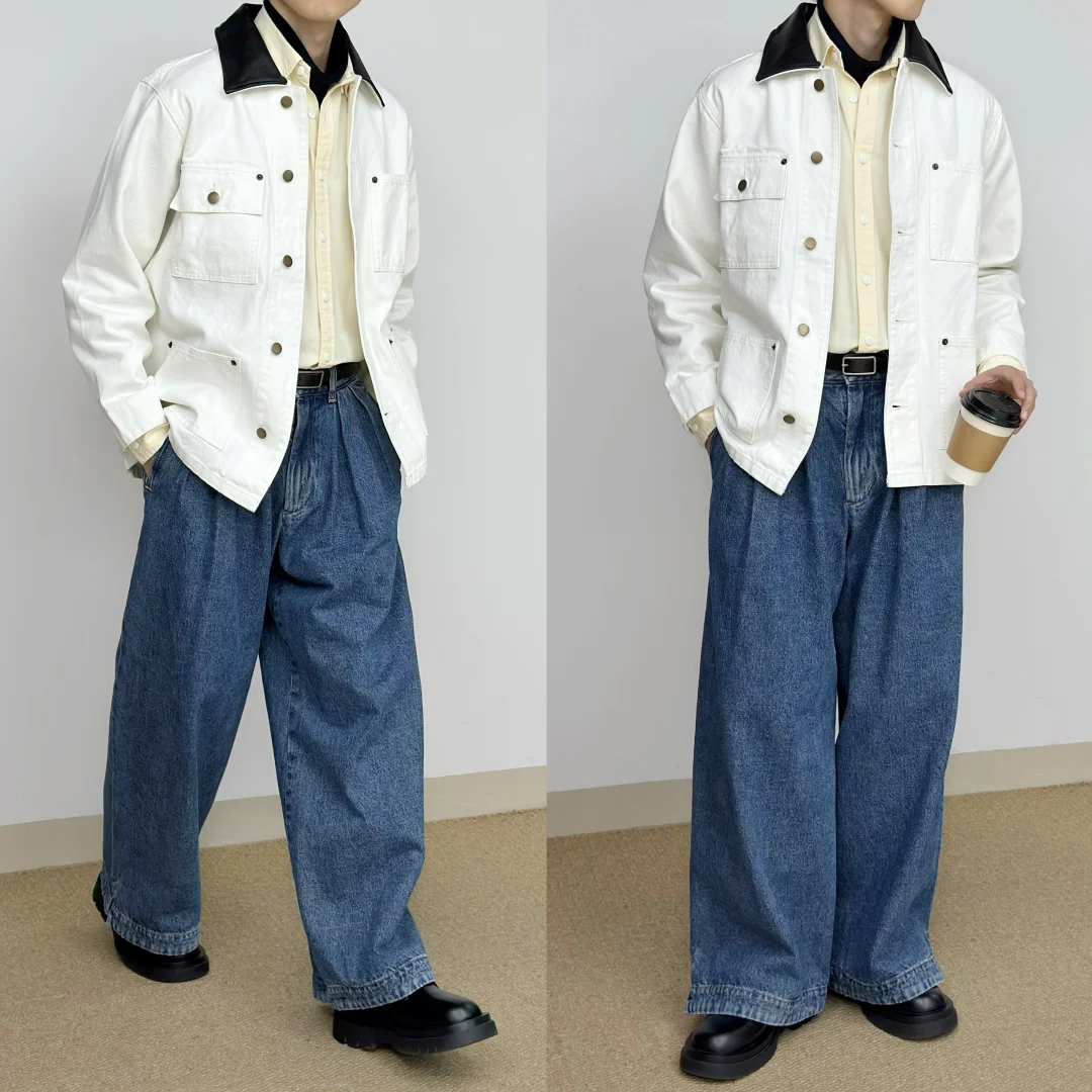 - 拼接夹克+阔腿牛仔裤 叠搭衬衫丰富层次🌟 简约干净的白黄蓝色系组合 松弛的版型,温和的色彩 穿出秋冬柔系美式造型~ -