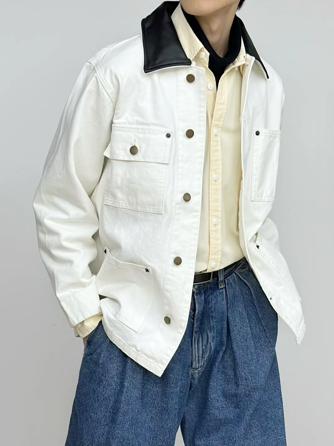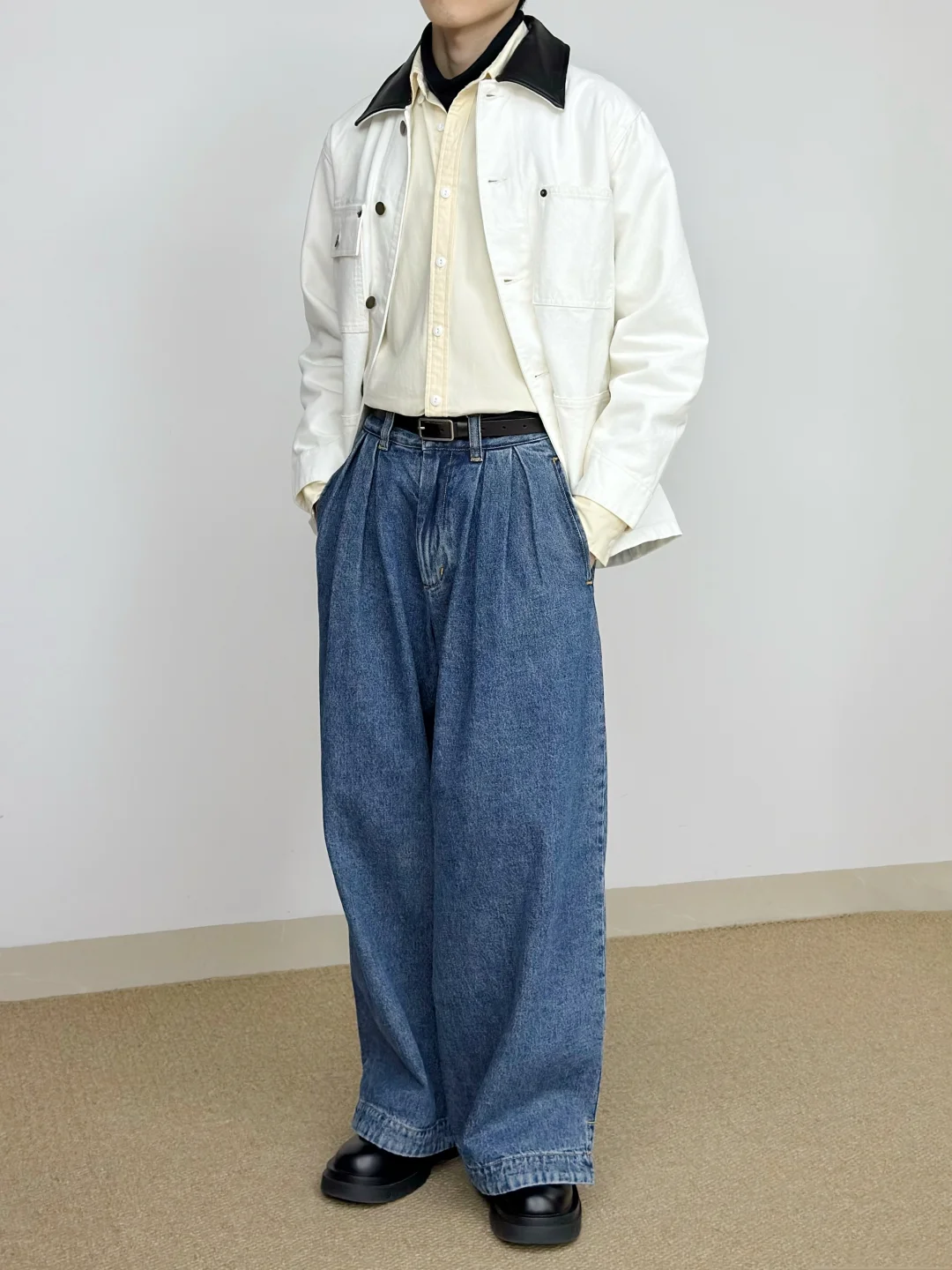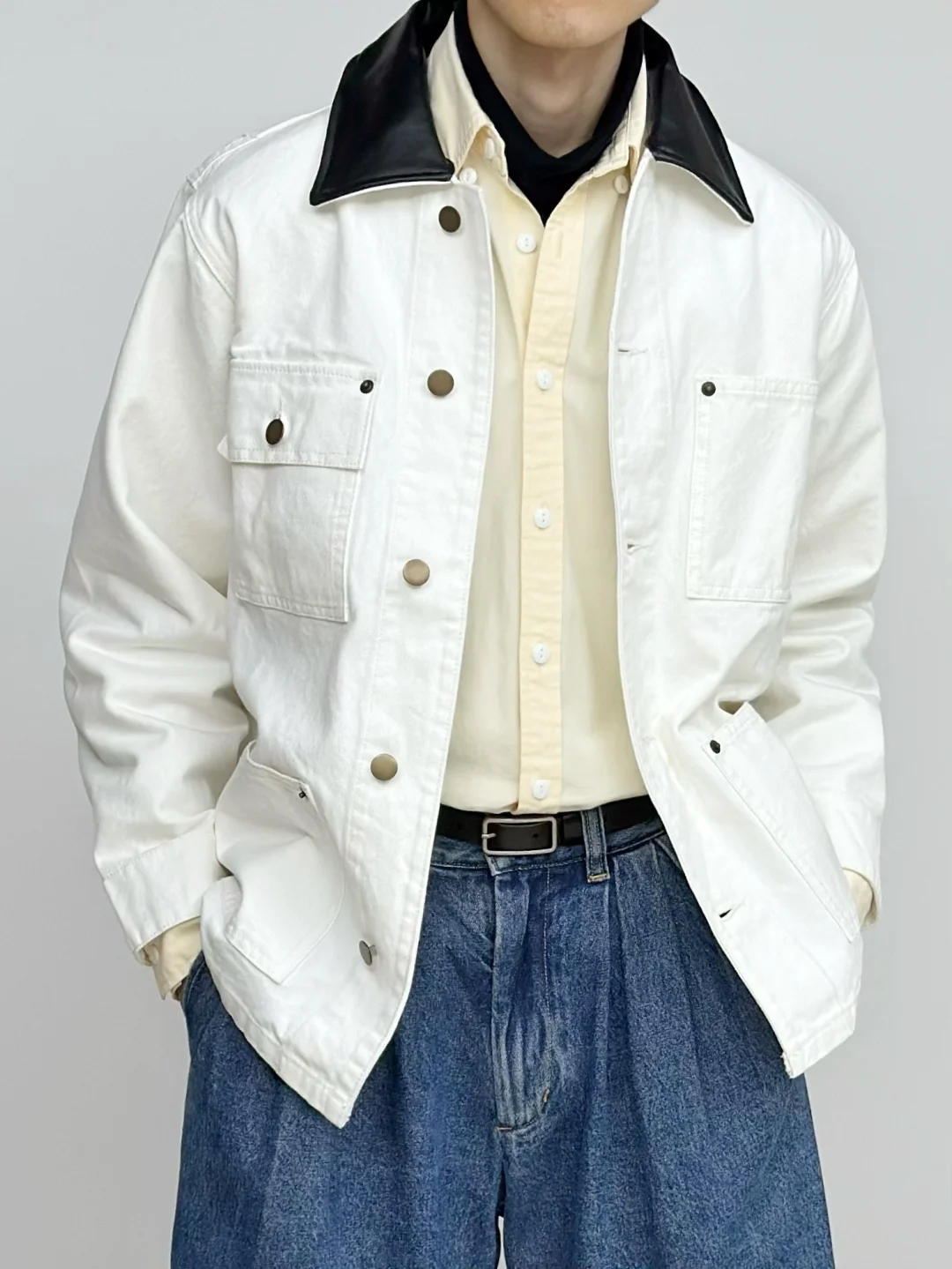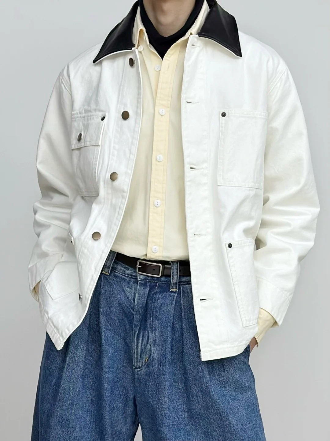 - 拼接夹克+阔腿牛仔裤 叠搭衬衫丰富层次🌟 简约干净的白黄蓝色系组合 松弛的版型,温和的色彩 穿出秋冬柔系美式造型~ -