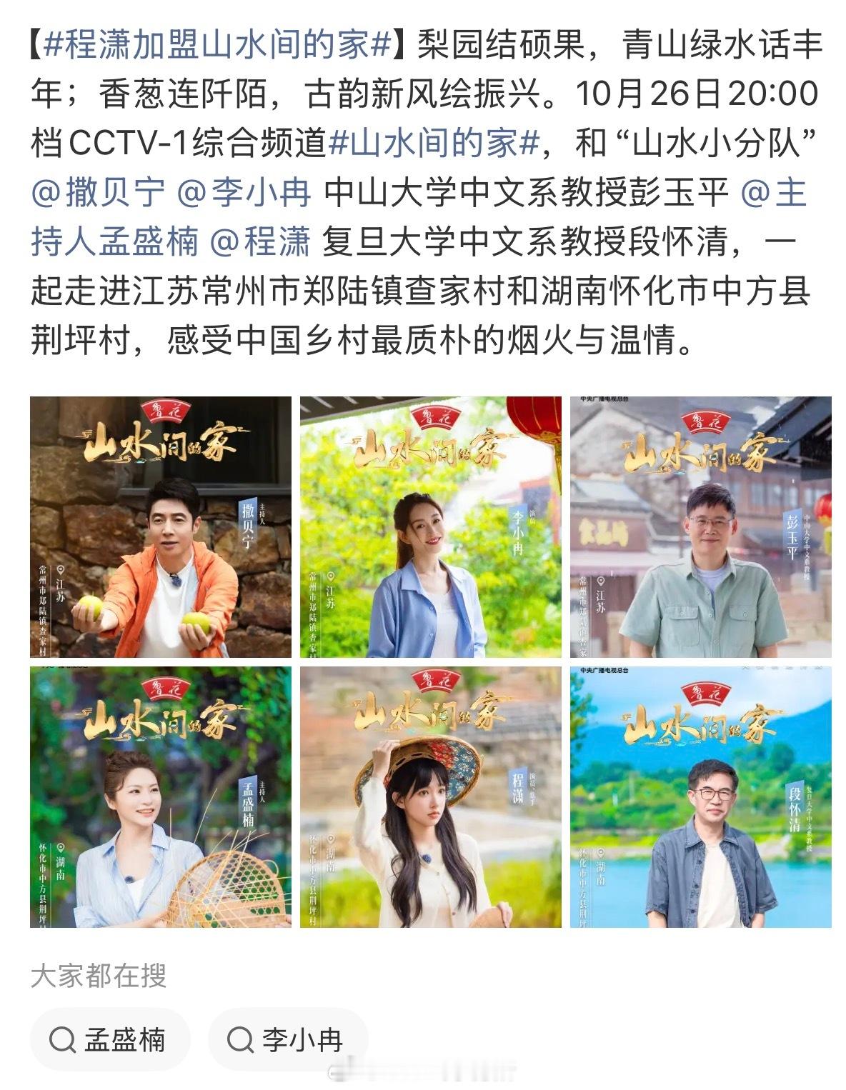程潇加盟山水间的家cctv1播出,很有意义的一部剧,根正苗红