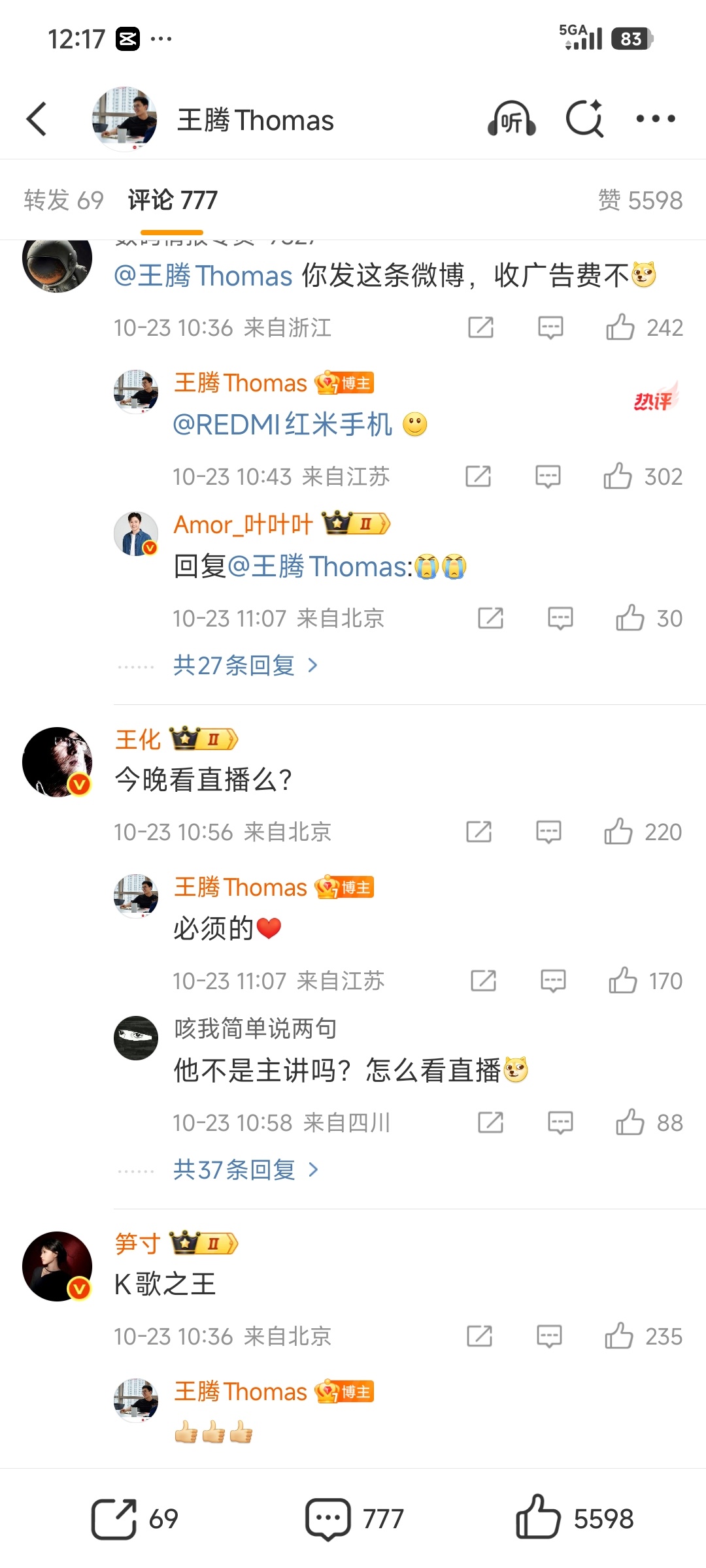 数码闲聊站[超话] 腾总还在转发红米K90!