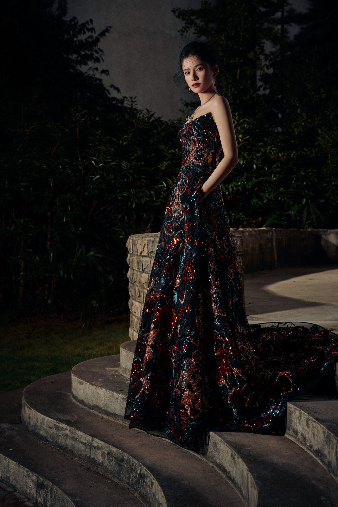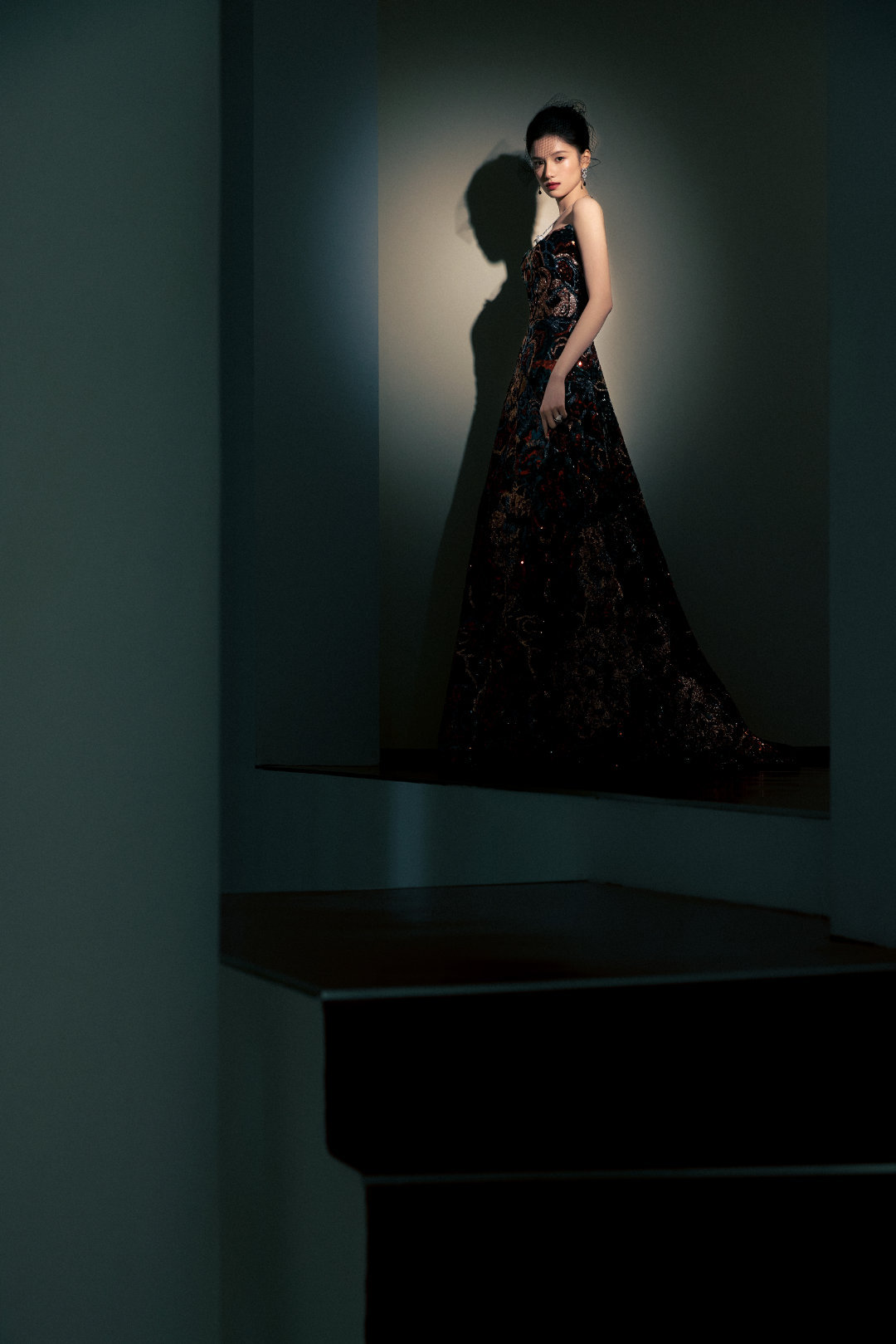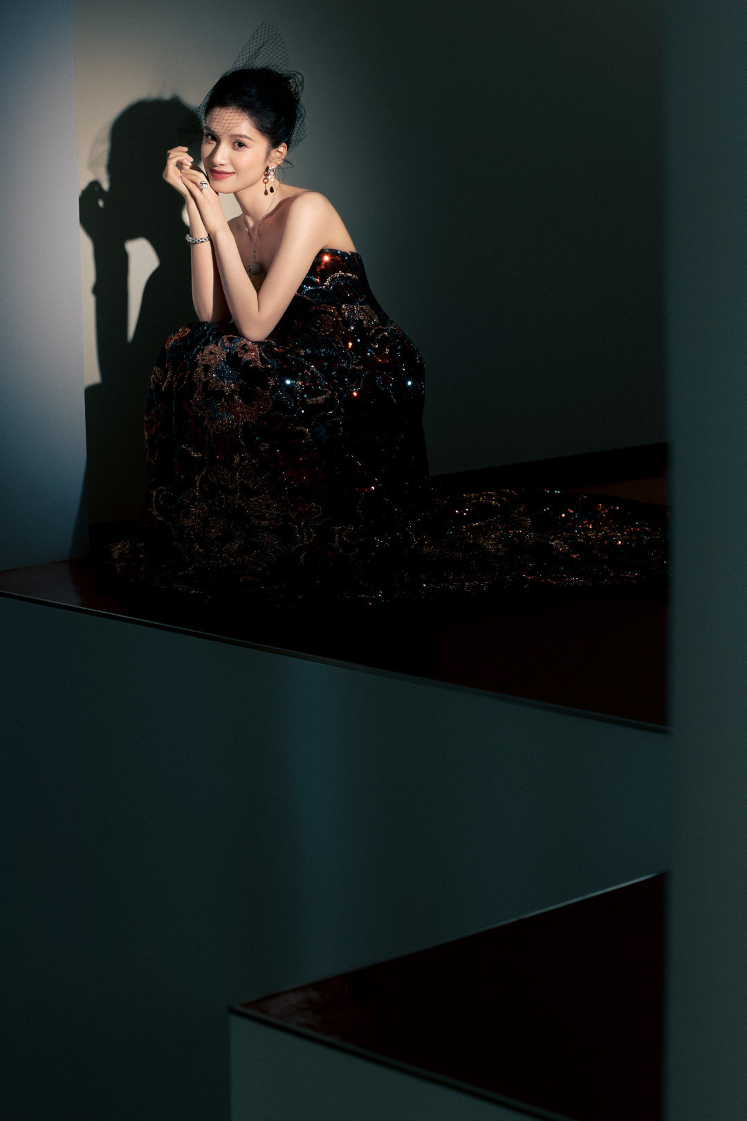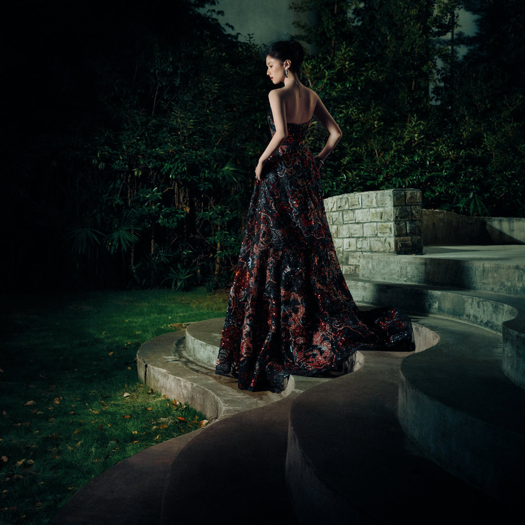 张婧仪身着Elie Saab 2025早秋系列亮片刺绣长裙,搭配Cartier高级珠宝亮相,身披星光银河,立于暗夜光影之中,如一株华丽绽放的牡丹,风姿卓绝~✨