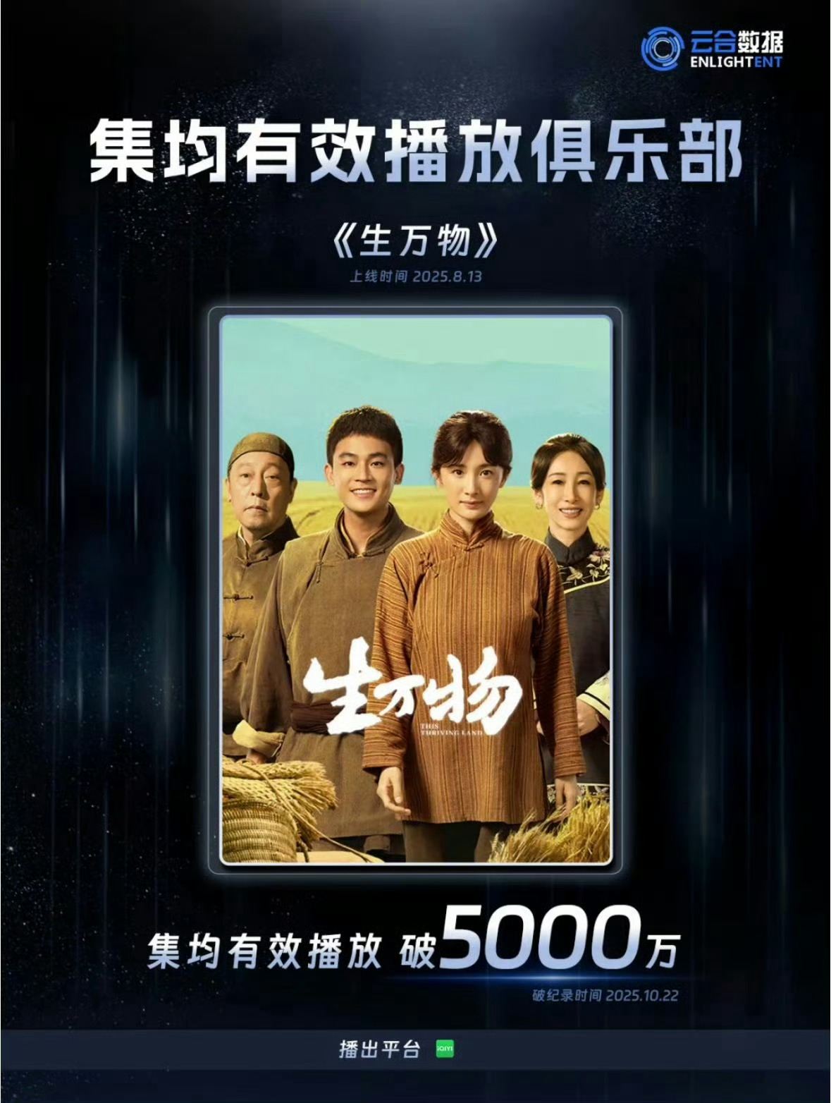 恭喜生万物云合累计播放量破5000万,二轮上星,东方卫视黄金档。生万物伟大,杨幂