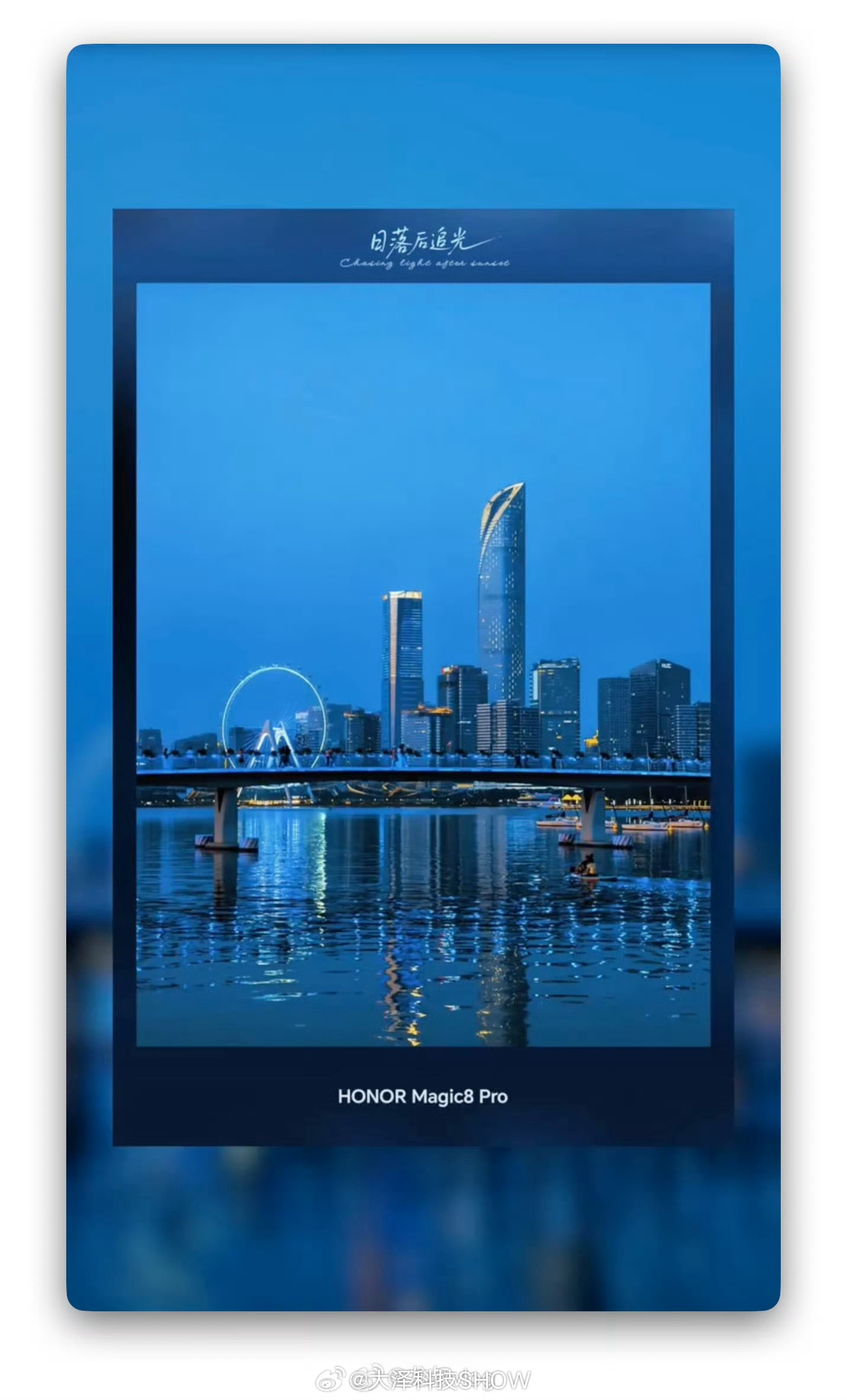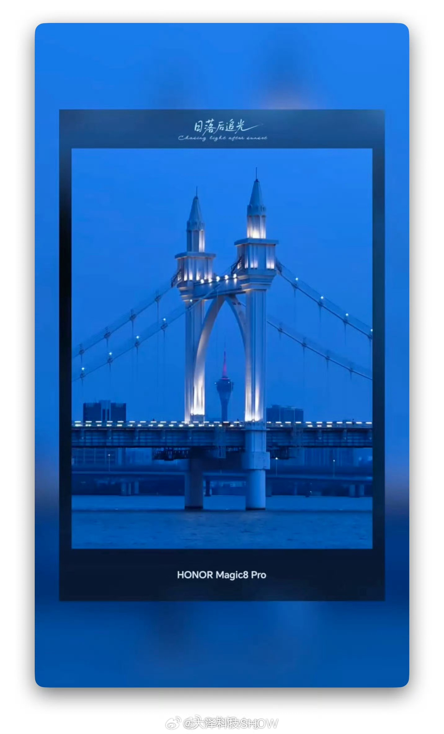 蓝调时刻是日出前或日落后太阳位于地平线下6°至8°的短暂时段,此时天空被深邃蓝光笼罩,光线柔和又带点梦幻感,是摄影界极具诗意的美学时刻,通常仅持续20分钟左右。荣耀Magic8镜头里的全球蓝调