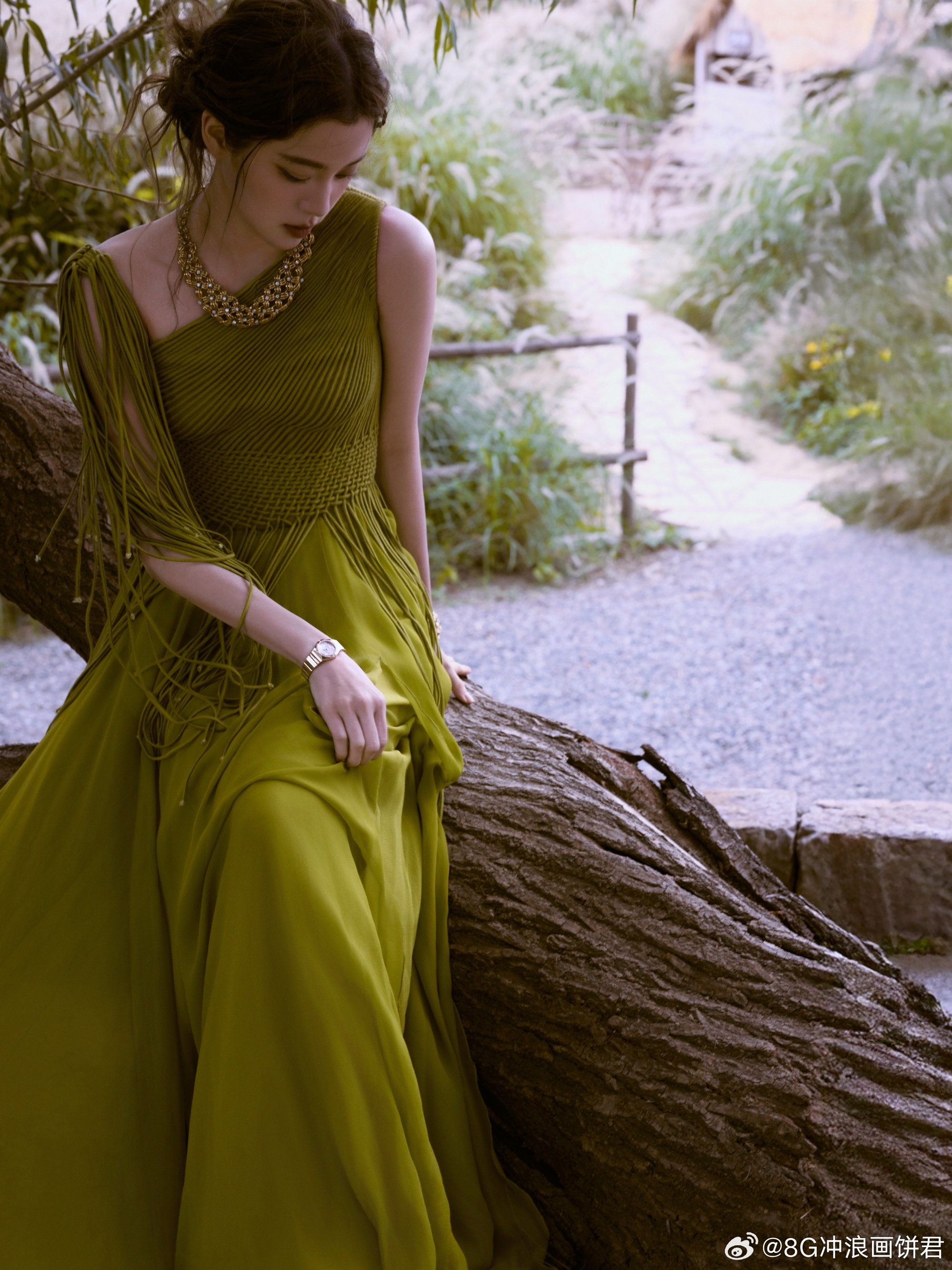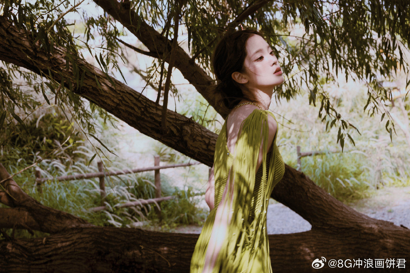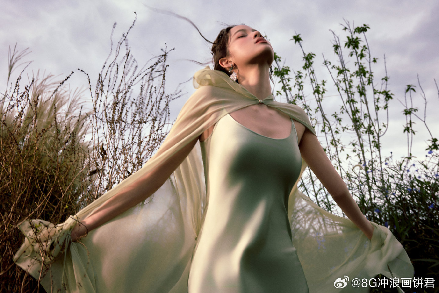 欧阳娜娜绿野仙踪 翡翠色系与肌肤光泽完美交融,飘纱轻覆展现朦胧美学。她让绿野仙踪不再只是童话,而是可触摸的森系圣典,每次转身都带着破次元的仙气。