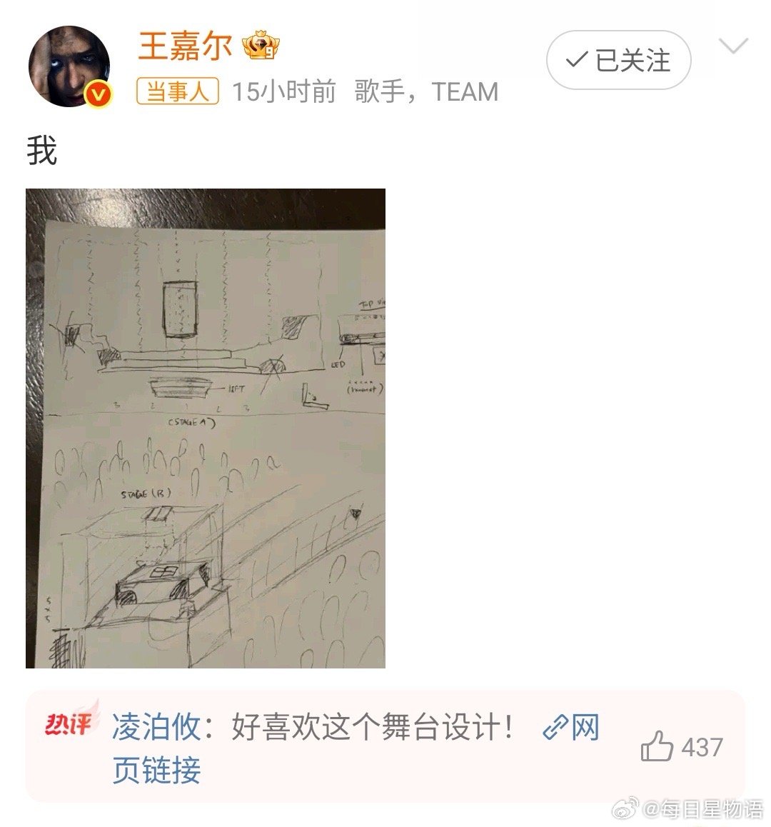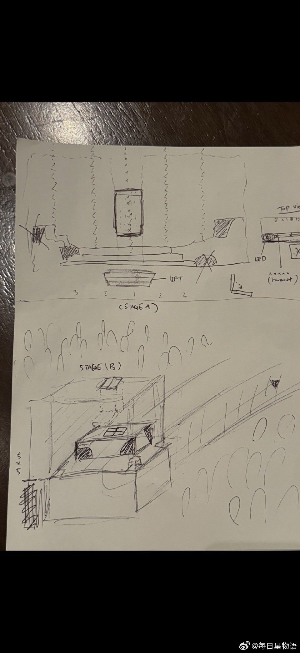 王嘉尔晒设计手稿这晒的何止是手稿,完全是在分享灵感与创意!就这对舞台细节的把控