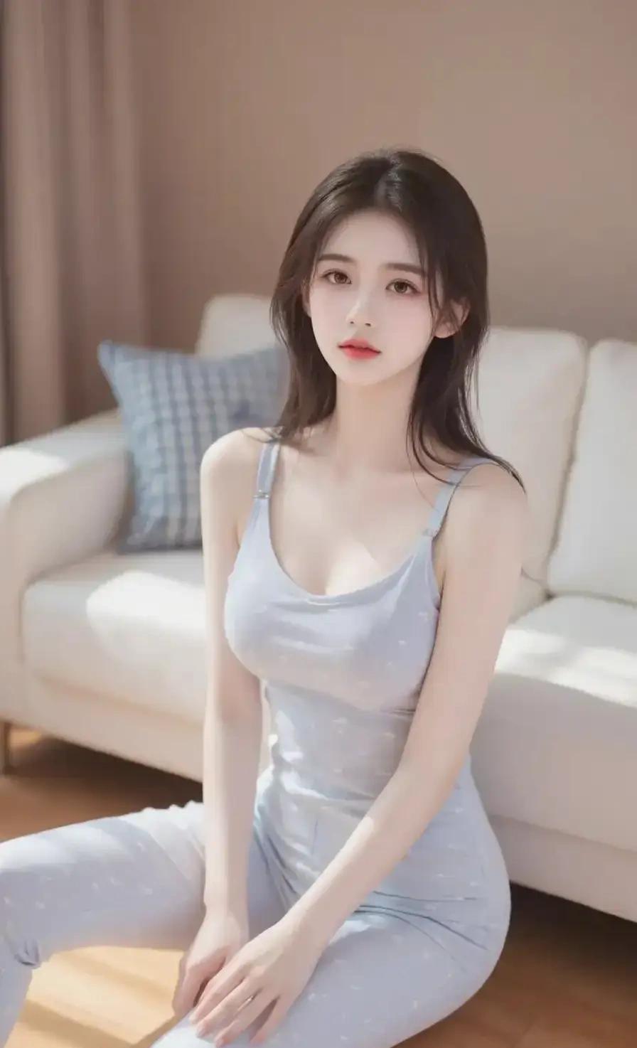 身着简约的灰色T恤和浅蓝色牛仔裤,展现出一种清新自然的风格。