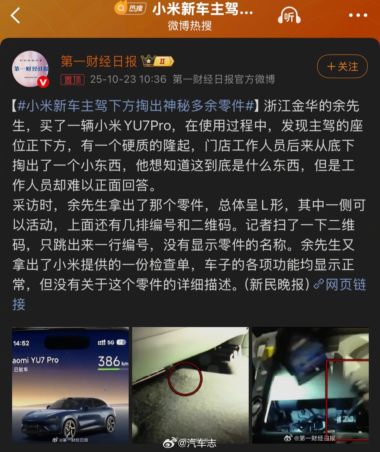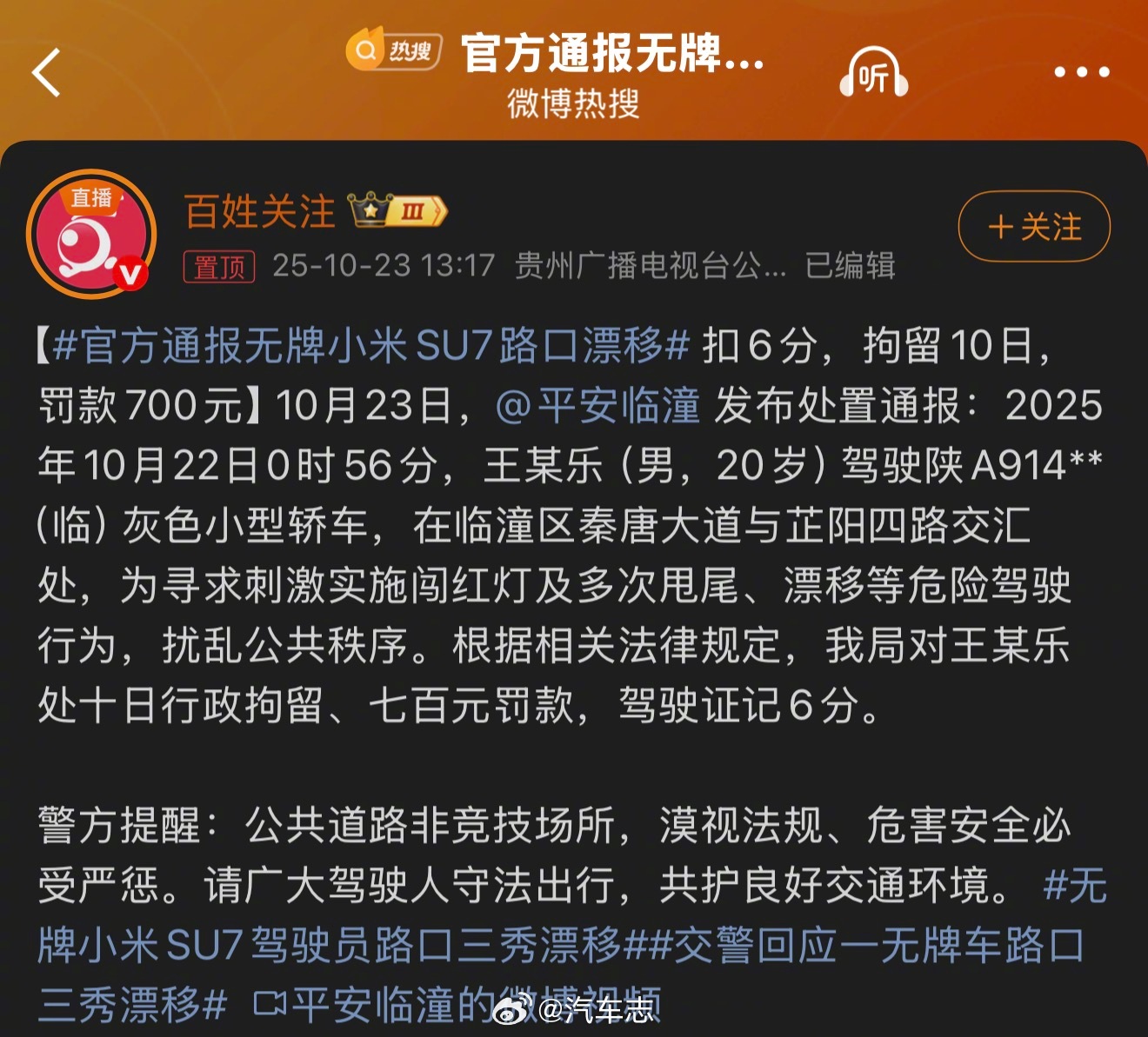 官方通报无牌小米SU7路口漂移小米新车主驾下方掏出神秘多余零件