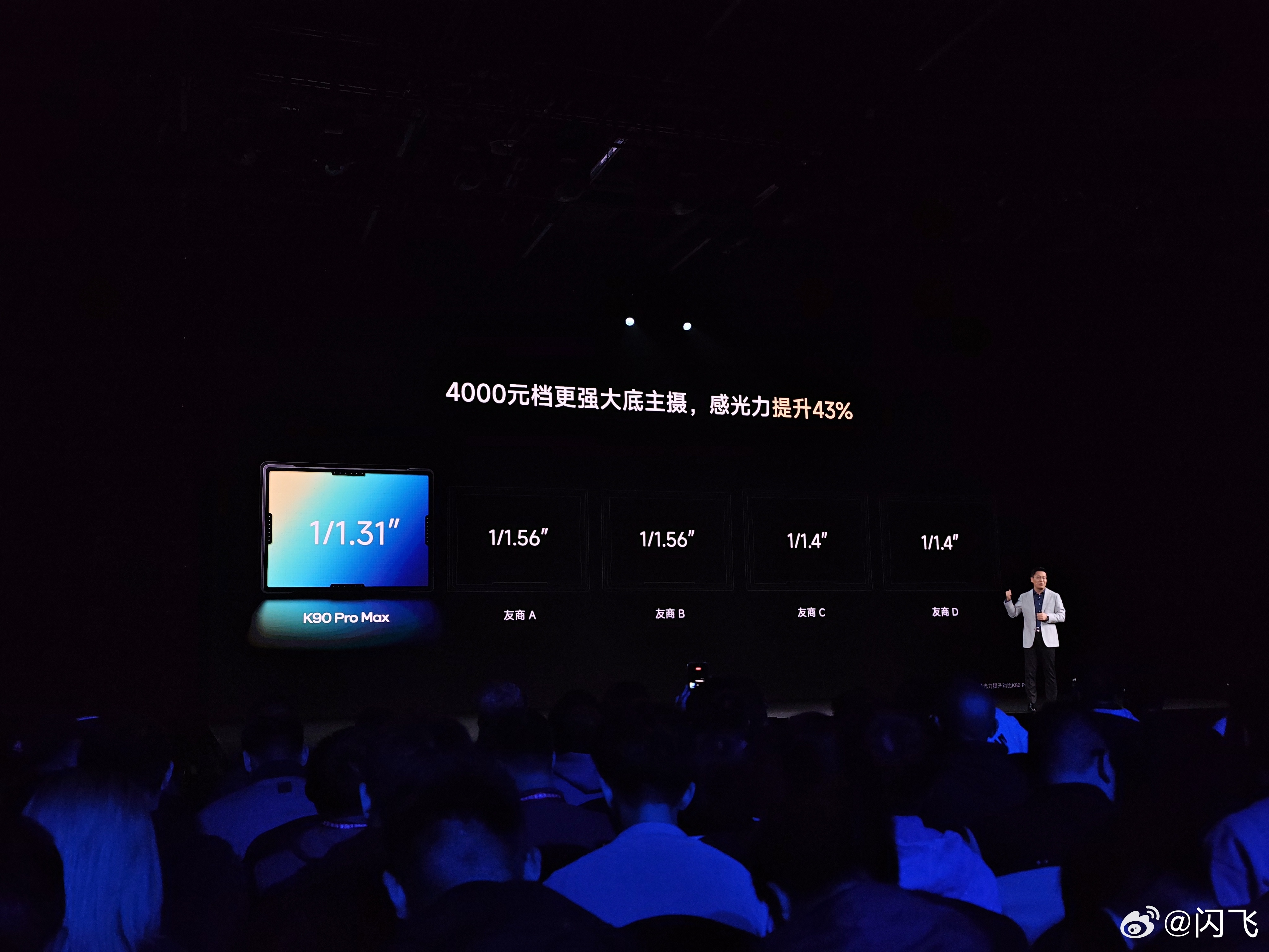 REDMI K90 Pro Max主摄采用小米17同款光影猎人950大底传感器,4000元档更大1/1.31英寸大底,还有小米17同款G+P镜组。