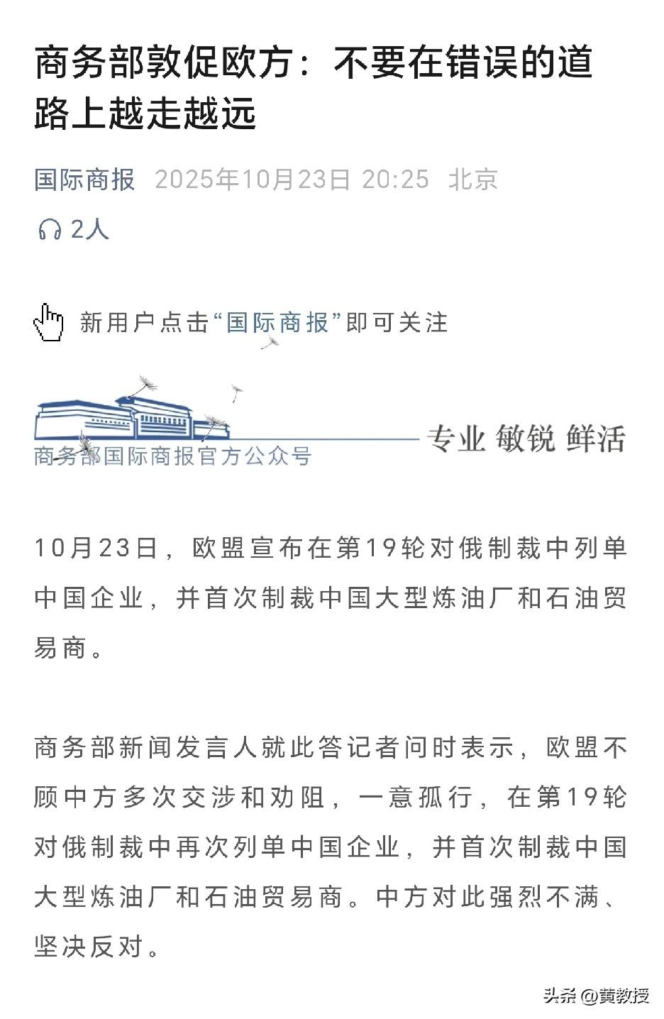 商务部敦促欧方: 不要在错误的道路上越走越远