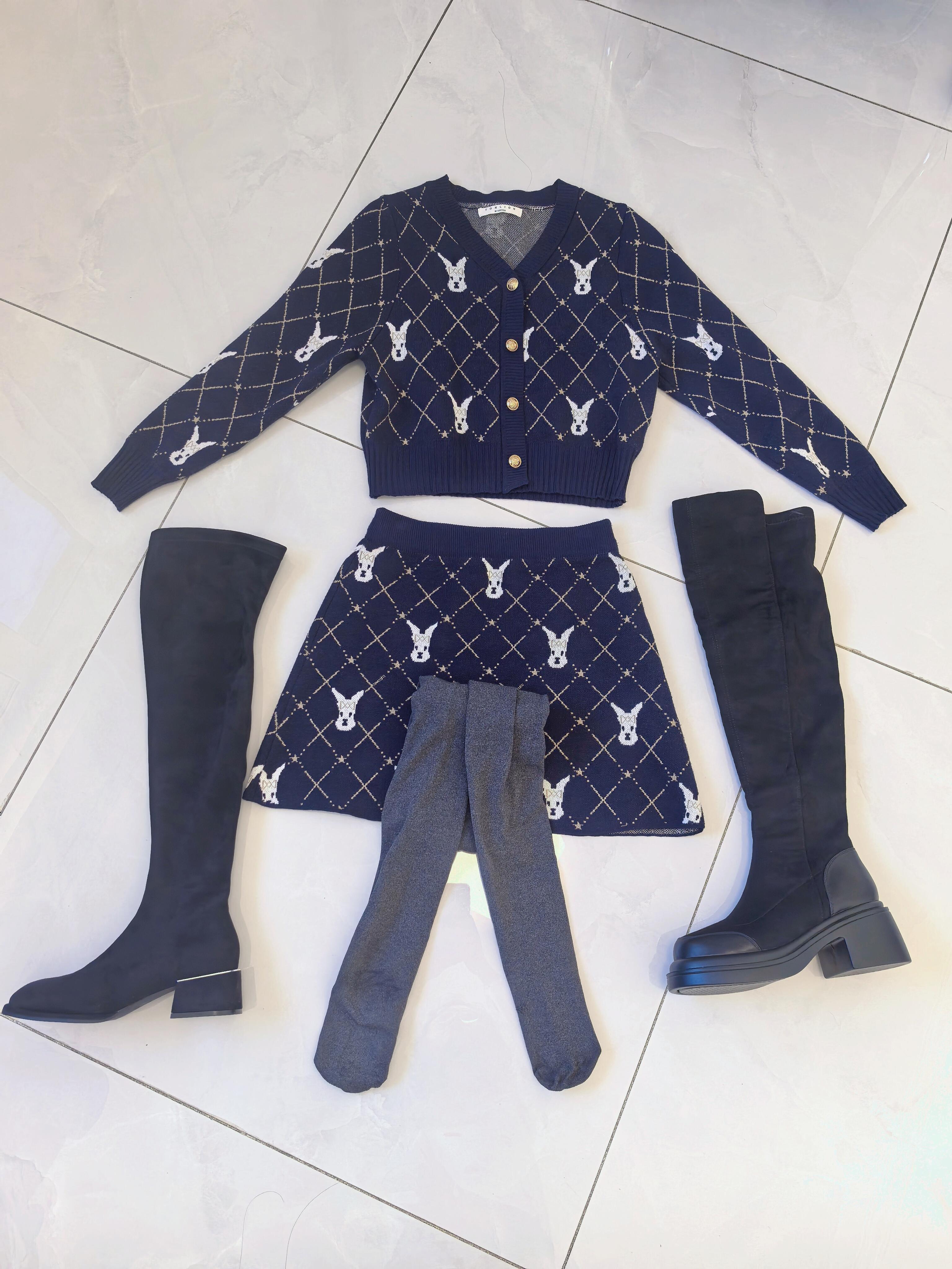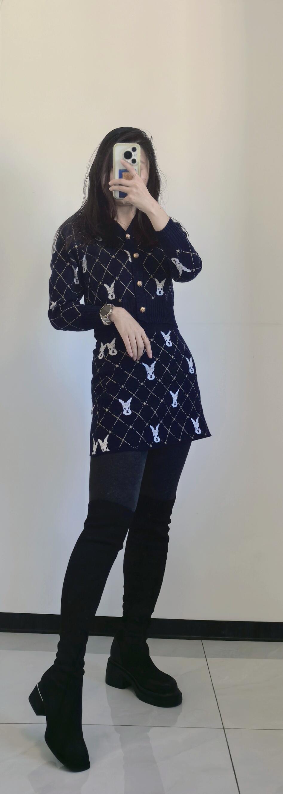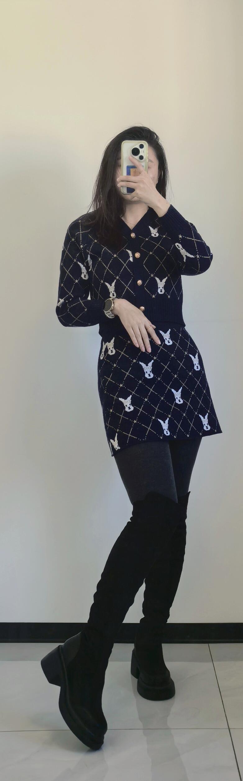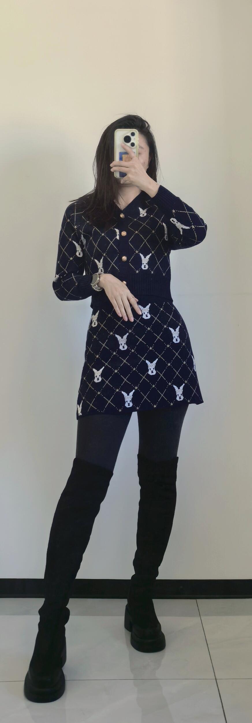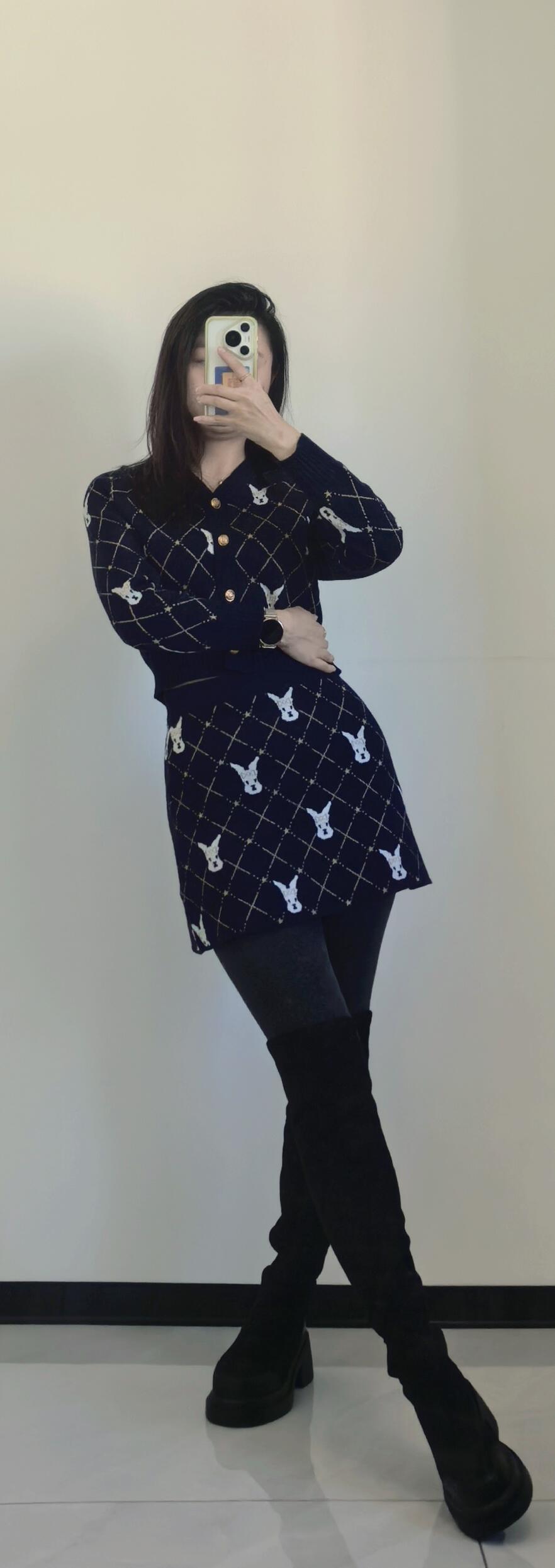 藏蓝格纹针织套装搭配 左靴优雅通勤 右靴甜酷吸睛 都是秋冬万能搭子