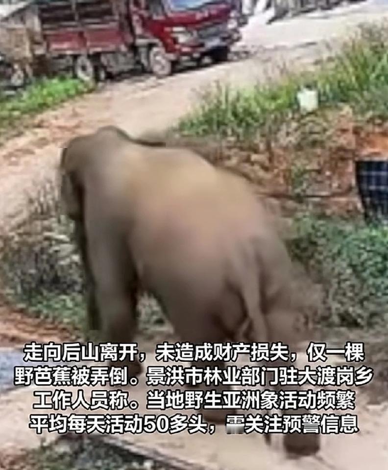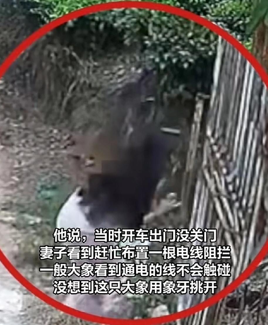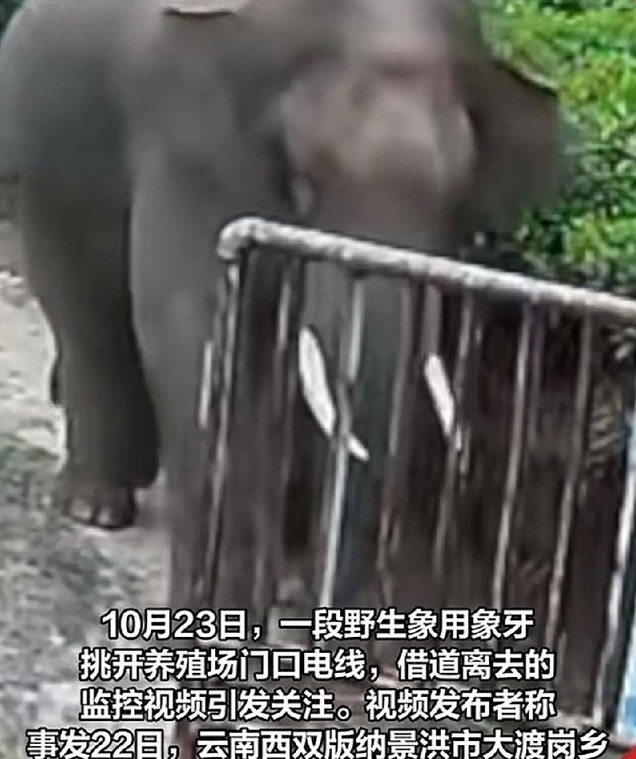 云南景洪生活了很多野生亚洲象,有时候会闯入人类的生活区,给当地人造成叨扰。 10月22日,一男子驾驶汽车从养殖场外出,没有关门。妻子想把门关上,但是已经来不及了,只见一头大象正向大门走来。妻子灵机一动,她知道大象害怕被电击。就在大门口布置了电线,试图吓唬大象,让它不敢通过。 大象可不傻,一根电线休想难住它。只见它用自己的长牙,将电线从大门口挑开,然后大摇大摆的通过养殖场,从容不迫的往后山离去。 所幸这头大象只是借道路过,除弄倒一棵野芭蕉外,未造成财产损失。不过,这么机智的大象,还是挺招人喜爱的。 丈夫外出未关门野象来“做客”云南大象亚洲象