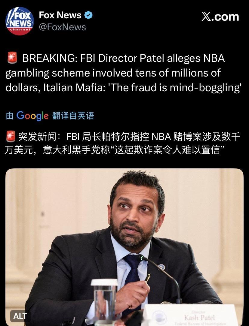 ——FBI 局长帕特尔指控 NBA 赌博案涉及数千万美元,意大利黑手党称“这起欺诈案令人难以置信”[流汗]