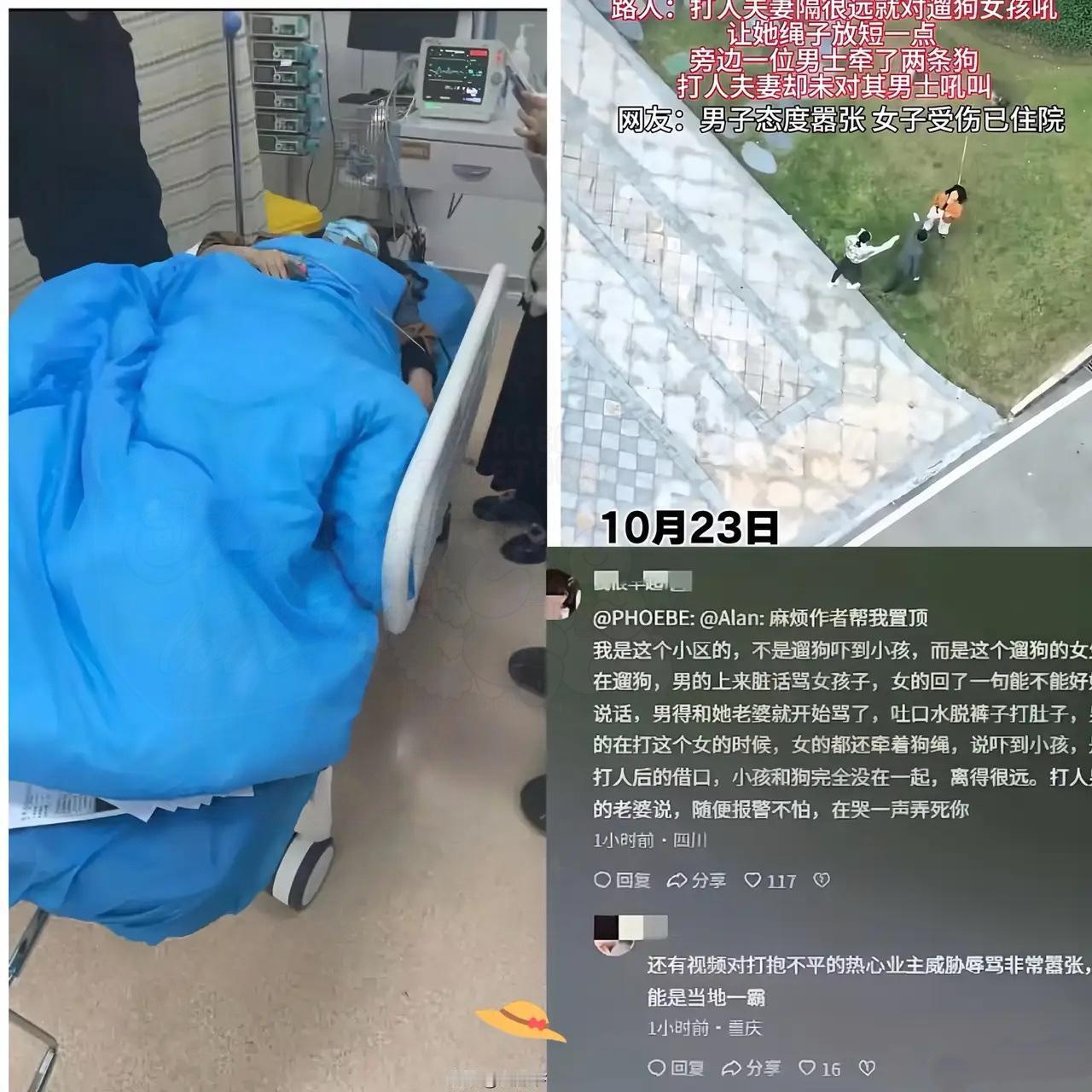 重庆遛狗女子被打后续来了! 不是因为狗没栓绳子, 也不是因为狗吓到孩子了,而是因为 狗绳长了点影响打人两口子走路! 33岁的陈女士明明规规矩矩牵着狗,却被唐某夫妻俩盯上。几句争执后,男的直接把人推倒,穿着皮鞋往她身上踹,陈女士喊救命都没用。更气人的是打人者还特嚣张,完全不把报警当回事。 这事最可怕的根本不是邻里矛盾,是有些人把暴力当特权!一句"影响通行"就动手,本质是觉得自己的情绪比别人的安全金贵。 警方已经立案,但必须严惩这种"一点就炸"的施暴者,不然只会助长更多戾气。 规矩是约束所有人的,不是用来给暴力当借口的。你们说,这种嚣张的行为该怎么罚才解气?